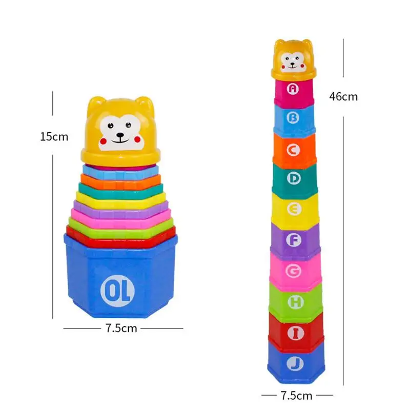 Это штабелирование чашек изготовлено из пластиковых материалов. Безопасность и здоровье, обучение во время игры. Ранние обучающие игрушечные чашки восхитительны, помогают малышу в ранней степени ознакомиться с размером, количеством и цветами, научиться считать, обучать детей отзывчивости и логическим способностям.