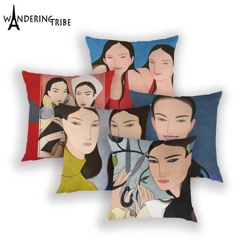 Beautiful Girl Throw Pillow Case Nordic Colorful Decorative Cushion Cover Portrait Home Decor Sofa Bed Car Cushions Cases Kissen