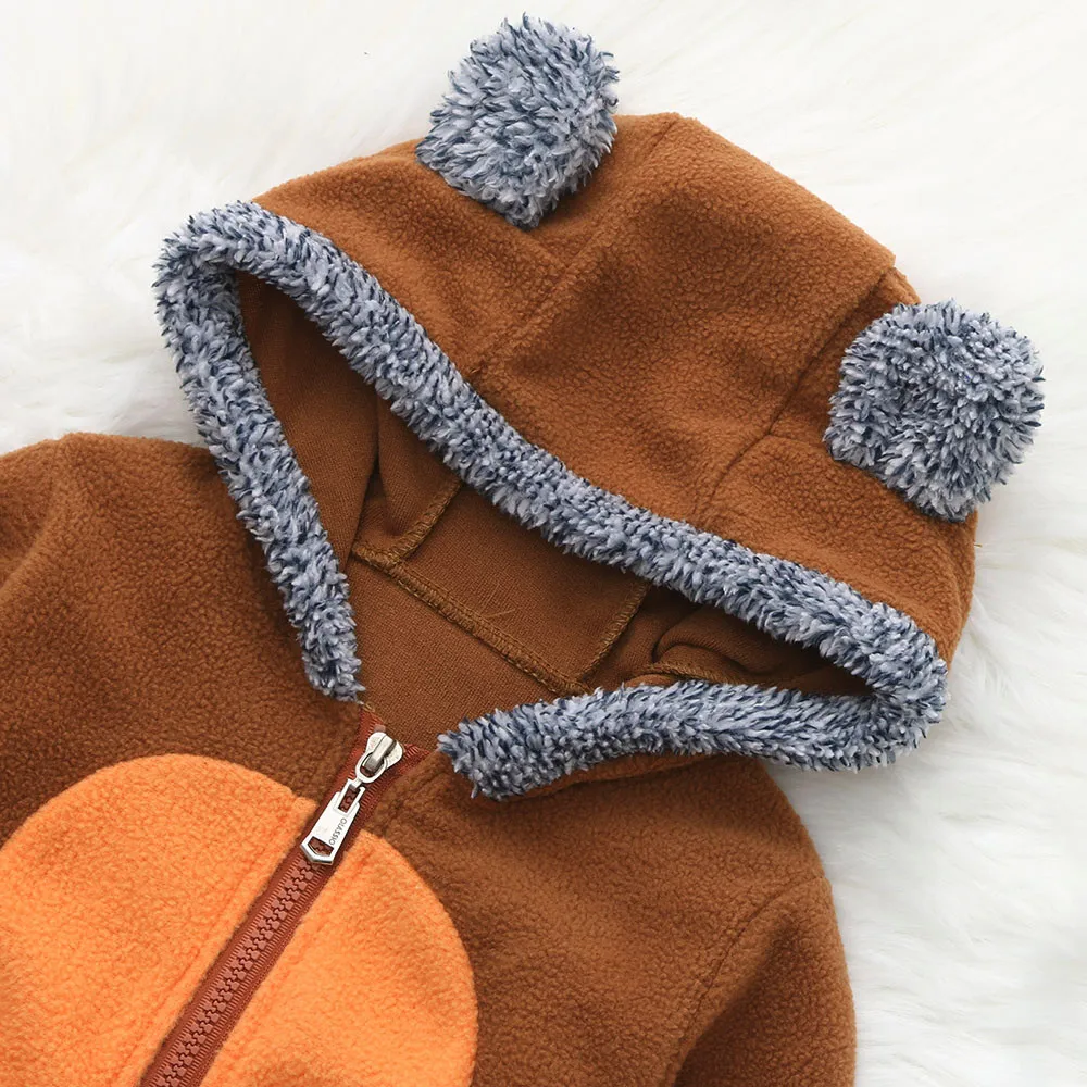 Теплая толстовка с капюшоном и рисунком для маленьких мальчиков и девочек, комбинезон, одежда с молниями, комбинезон