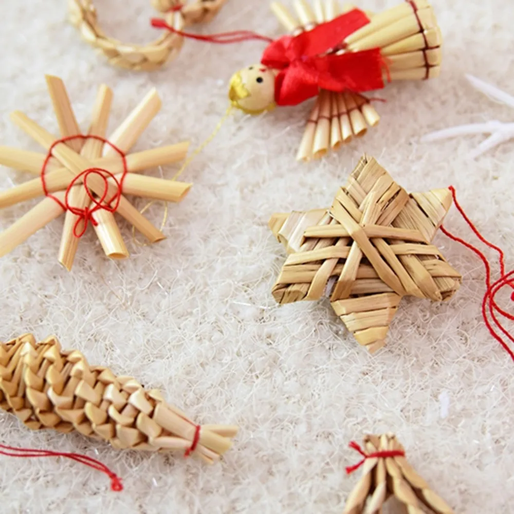 Натуральная Пшеничная солома ручной работы мини пятиконечная звезда Снеговик Рождественская елка кулон рождественские украшения