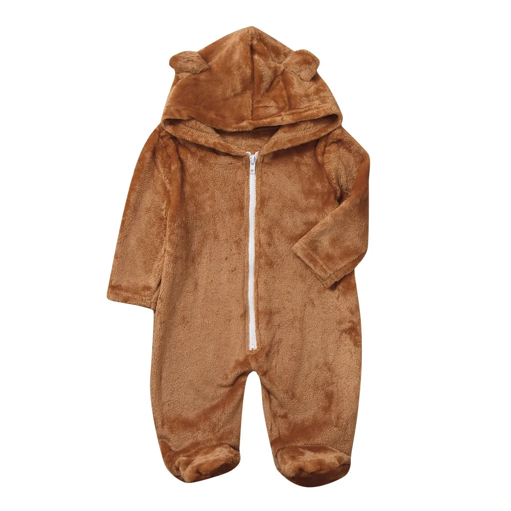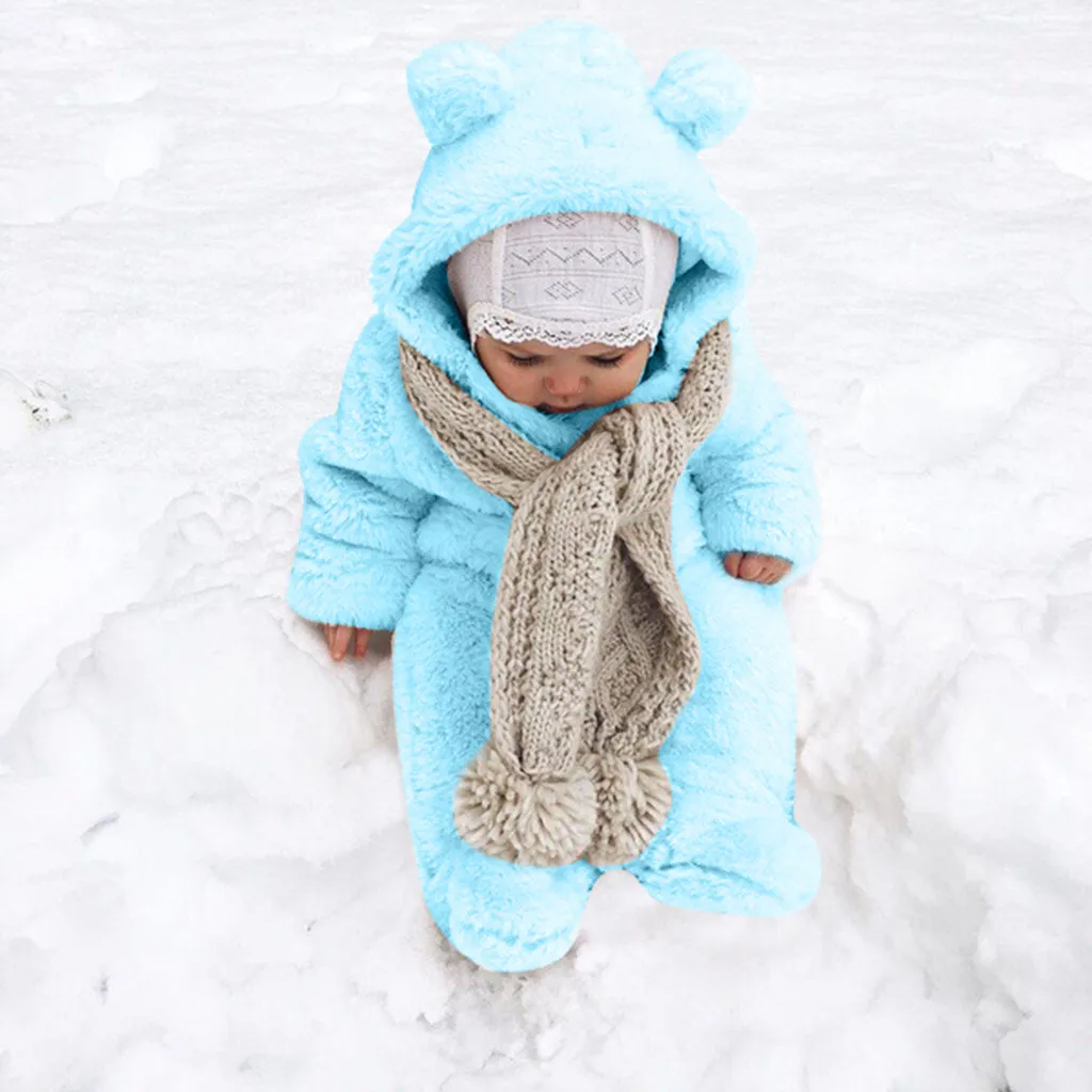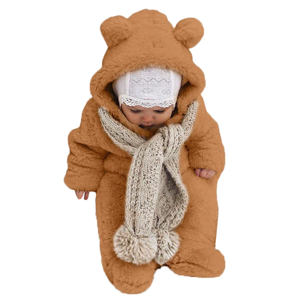 Зимний флисовый комбинезон для новорожденных мальчиков и девочек; комбинезон с капюшоном; теплое пальто; верхняя одежда