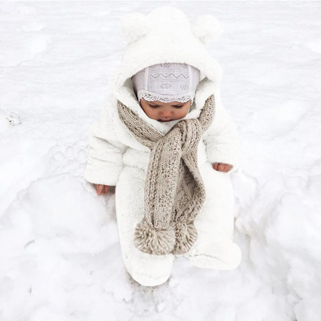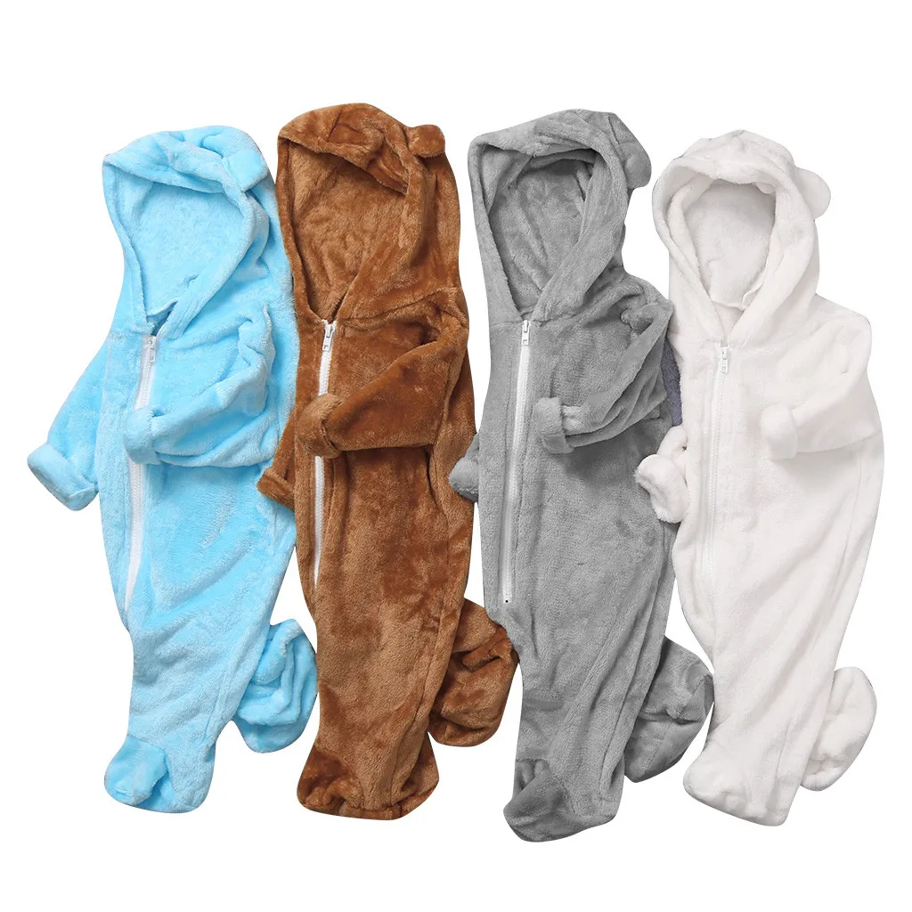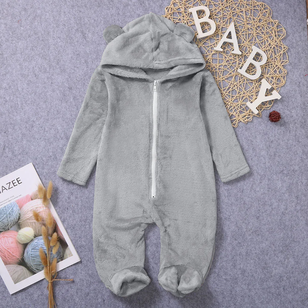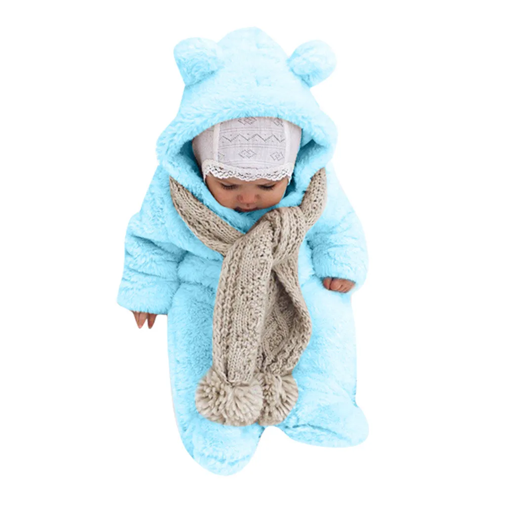 Зимний флисовый комбинезон для новорожденных мальчиков и девочек; комбинезон с капюшоном; теплое пальто; верхняя одежда