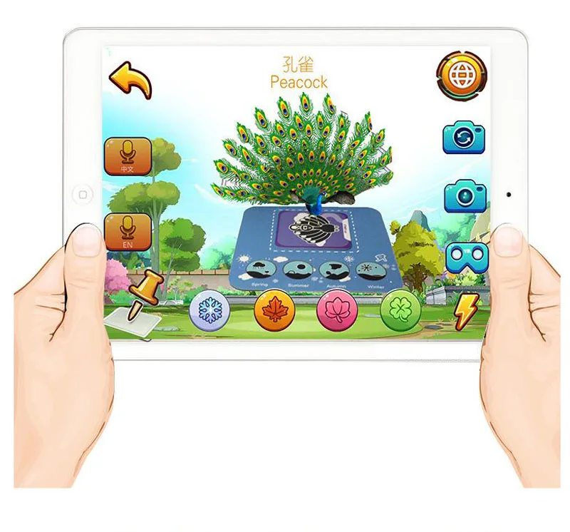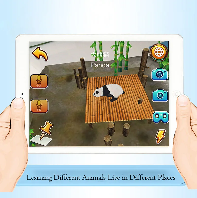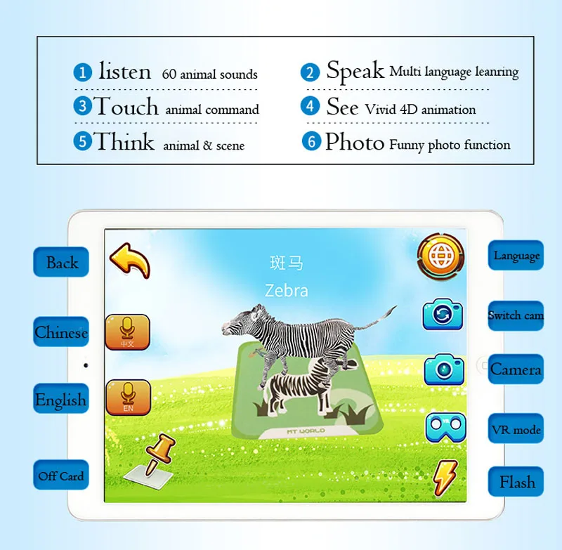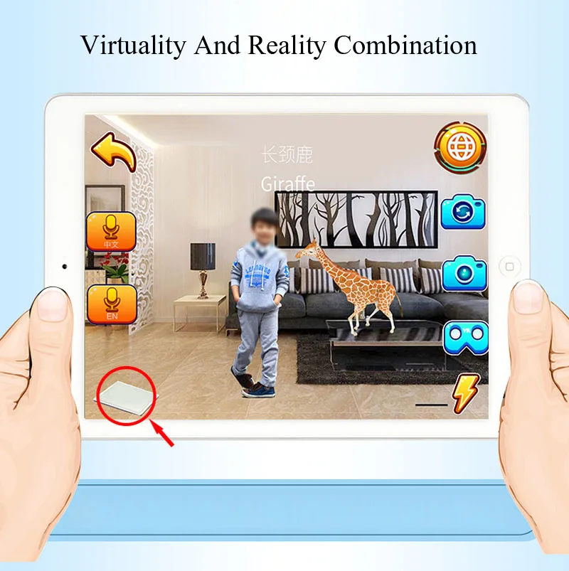 Для сканирования телефона Детская обучающая игрушка AR 4D яркая обучающая карта для животных Виртуальная реальность игры с несколькими языками Лучший подарок для детей, обучение детей, игра, обучающие игрушки для коллекционирования, энтузиастов транспортных средств. Развивайте координацию рук и глаз детей и создавайте ум. С 4D AR vivid animal tpuch sense, просто используйте свой телефон или коврик для вниз наше приложение, используйте функцию сканирования, наш набор игрушек может играть много методов для ваших детей. Размеры:. 25,5*19,5*4,2 см Материал: пластик и Карта Функции: сканирование, обучение, взаимодействие, контроль животных и т. Д. В комплект входит: 1 Набор детских игрушек AR 4D