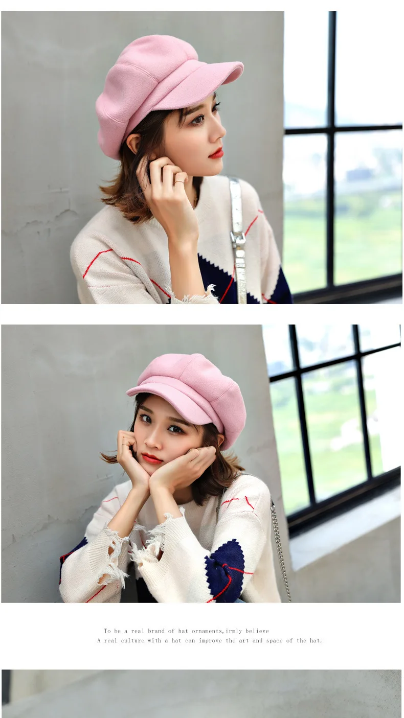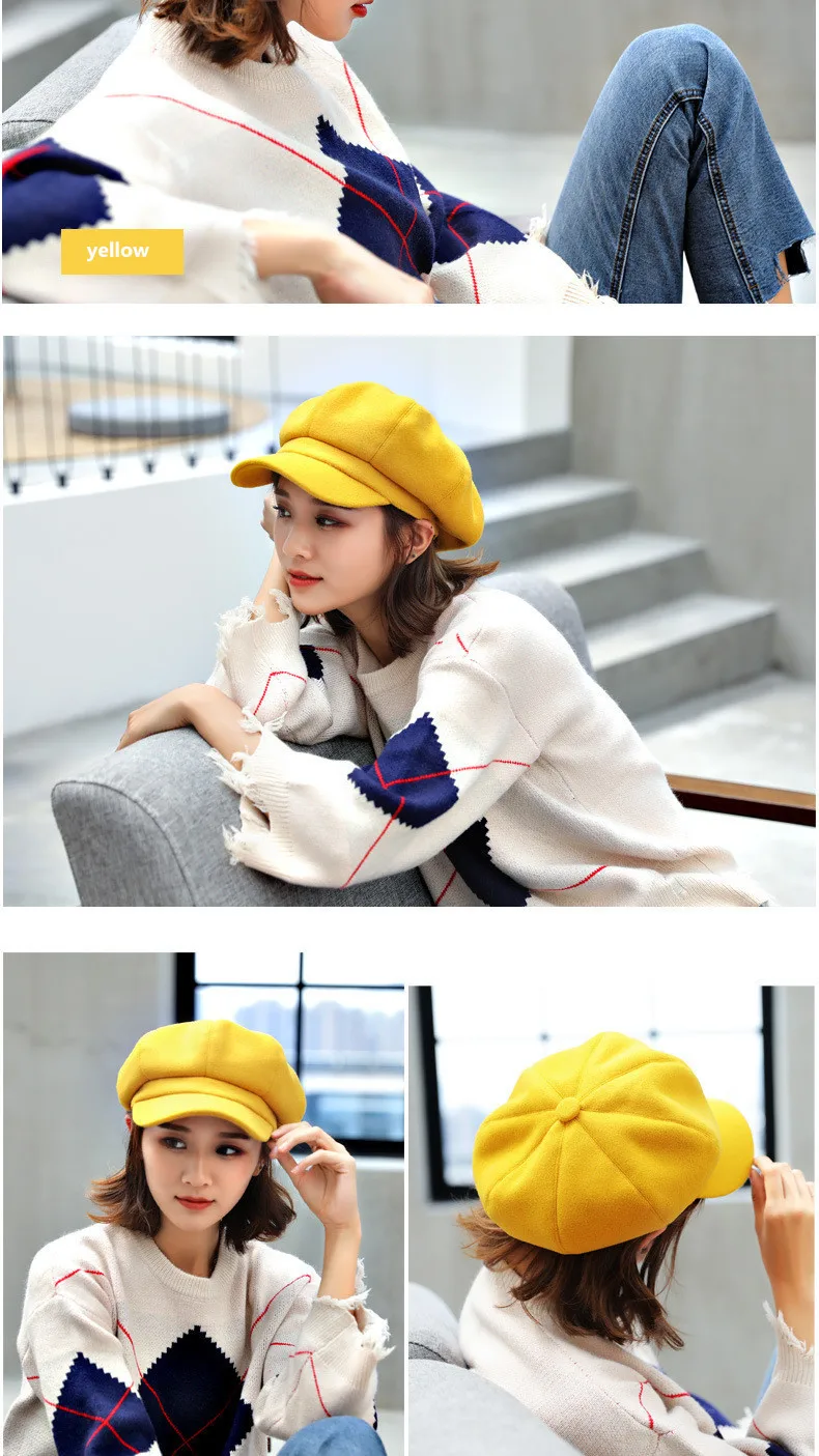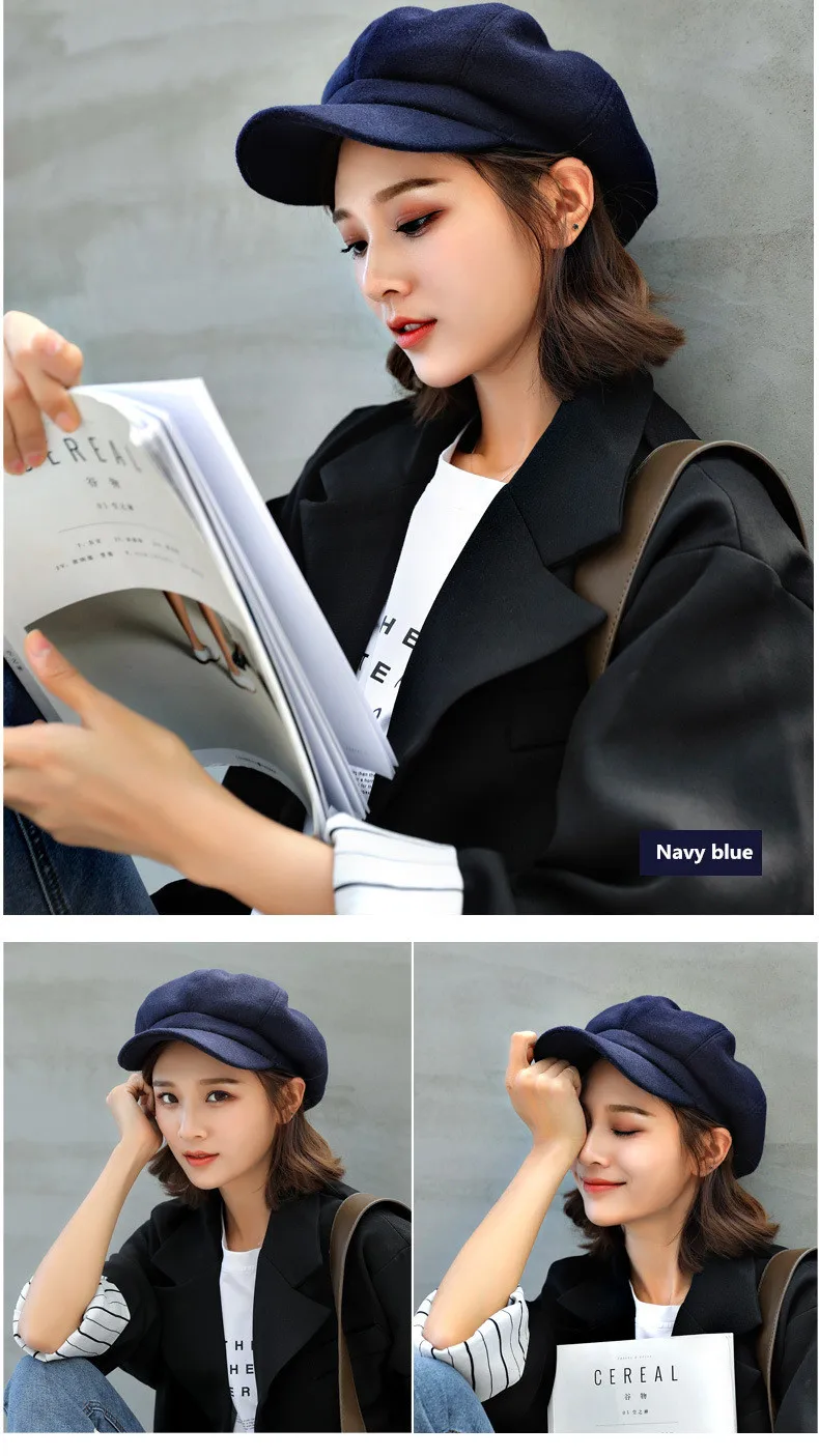 Осенняя однотонная восьмиугольная шапка женская кепка Newsboy берет художник шляпа модная Корейская винтажная Повседневная Дамская берет шапки
