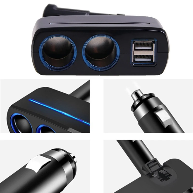 [Расширяйте Преимущества]: преобразуйте и Увеличьте свой автомобильный прикуриватель с 1 гнезда на 2 гнезда и 2 порта USB, может заряжать до 4 устройств одновременно. Двойная розетка, общая мощность 120 Вт, подходит для автомобиля 12-24 В. Подходит для нескольких устройств в дороге.