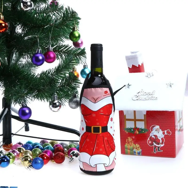Рождественский мини-фартук крышка для бутылки с красным вином бар КТВ вина чехол для бутылки украшения из ткани Рождественский набор для домашней вечеринки