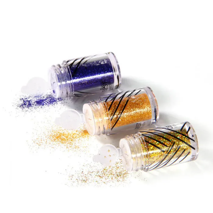 1. Частицы золотого порошка однородны по размеру, красивы по цвету, сильны в блеске, и круглый дизайн отверстия на крышке, который может облегчить равномерное проливание золотого порошка.