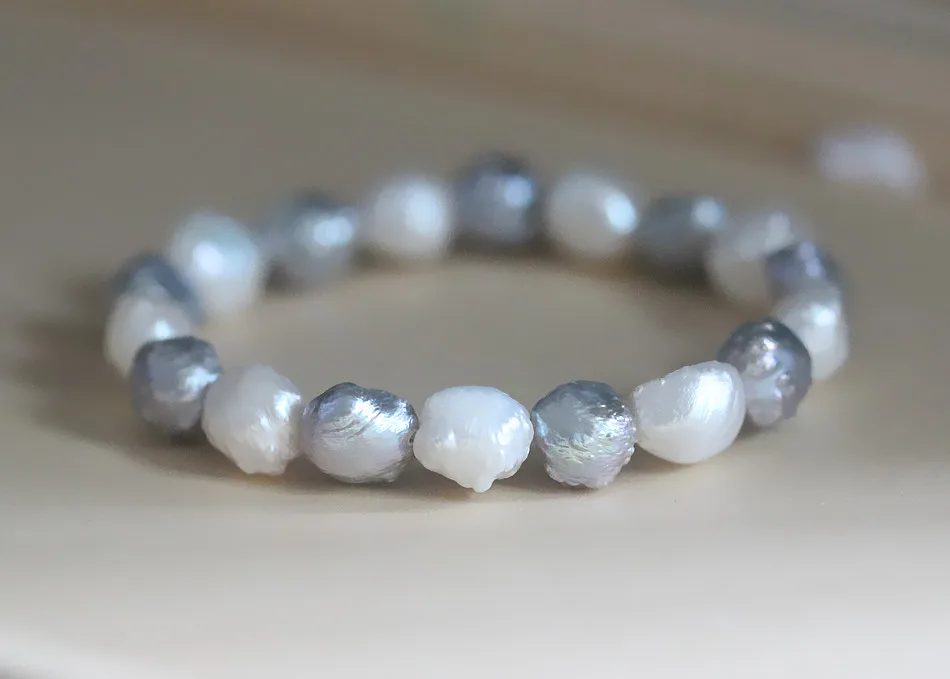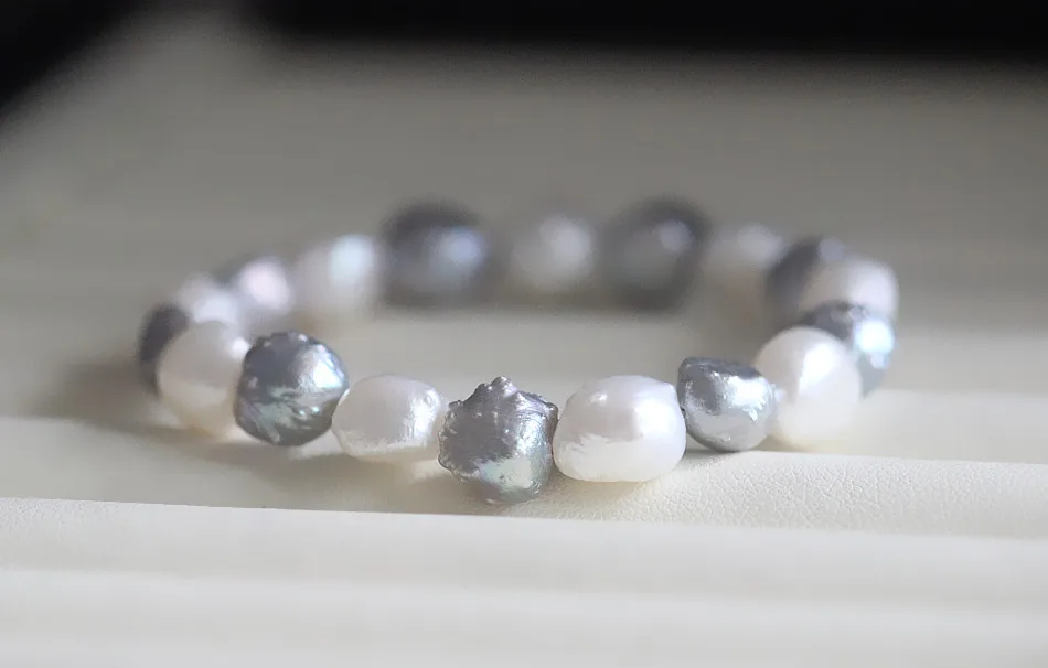 Бренд: XUELUO Название: эластичный браслет из натурального пресноводного жемчуга в стиле барокко Размер жемчуга: 9-10 мм Цвет жемчуга: белый/серый/смешанный цвет Качество жемчуга: AAA Поверхность: сильный блеск, Форма жемчуга: барокко Длина браслета: 18/19 // 20 см