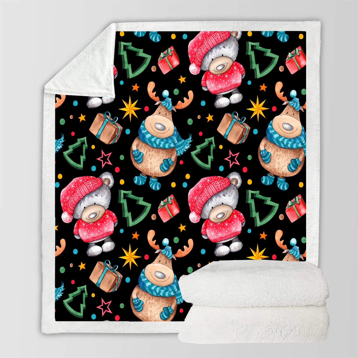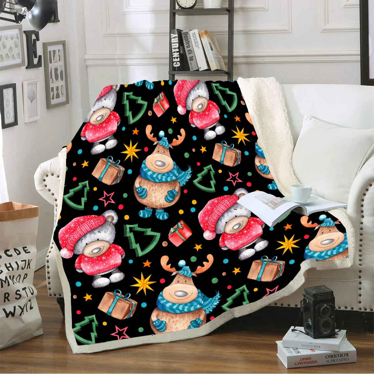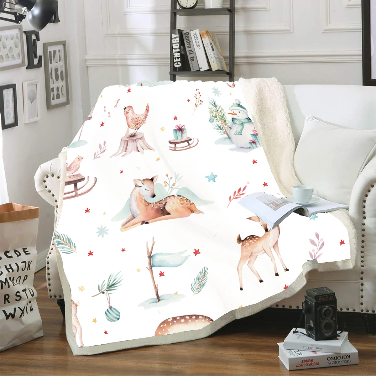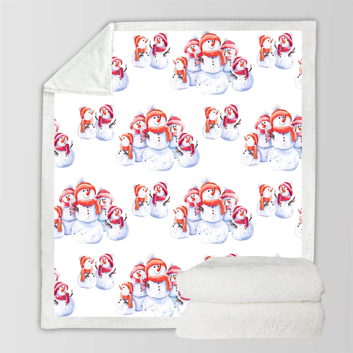 Мягкое уютное покрывало с 3D-принтом в виде снеговика и животных, флисовое покрывало для кровати, дивана, автомобиля, плюшевые покрывала, зимнее покрывало
