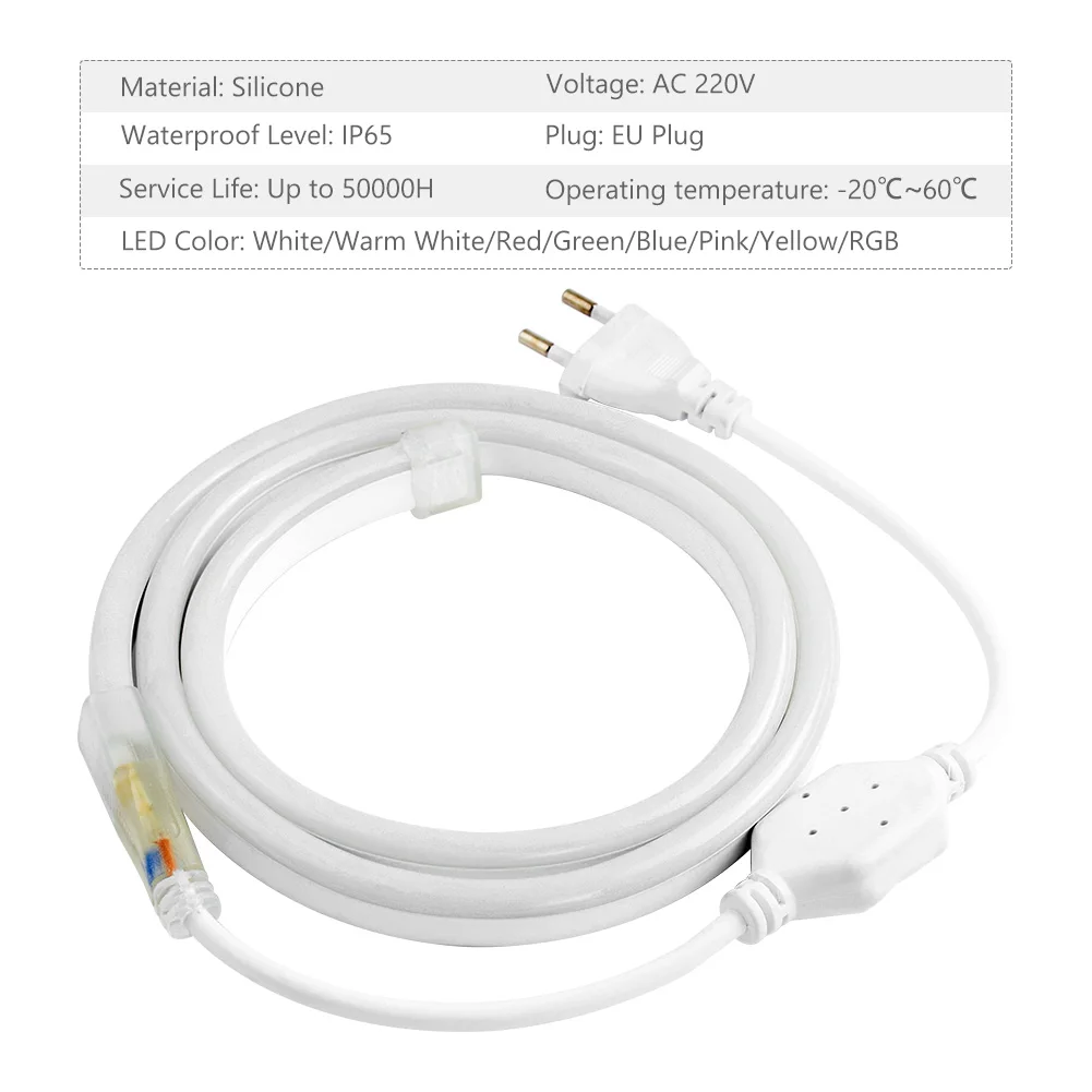 Особенности 100% новый! 220 В силиконовый светодиодный светильник s веревка, гибкий ламповый ремень отличается термостойкостью, водонепроницаемостью, коррозией, устойчивостью к погодным условиям и обладает отличной способностью к УФ-излучению, чем традиционная куртка из ПВХ, гарантирует Вашу безопасность, что светодиодный светильник работает дольше. Низкое энергопотребление, супер-яркий, но работает при низкой температуре. Использование чипов премиум-класса 2835, 120 светодиодов/м, ярче и эффективнее, дизайн боковой яркости делает неоновый светильник ярче, чем другие, диапазон проекции 180 градусов обеспечивает большое освещение. Cuttable неоновые веревки огни, 1 м/3.3ft в разрезе, мягкие и гибкие, вы можете отрезать его и DIY специальное жилое украшение/Дизайн Уникальный коммерческий знак. Наш точечный светодиодный неоновый светильник, равномерно светящийся, отлично подходит для рекламных вывесок, буквенных вывесок, вывесок, контуров, стола/кровати/автомобиля/украшения стен и многого другого, подходит для помещений/улицы/круглый год. Технические характеристики Вход Напряжение: AC 220-240 V светодиодный Тип: SMD 2835 Светодиодный Количество: 120 светодиодный s/M Мощность: 12 Вт/м (красный, зеленый, синий) Угол пучка: 180 ° можно резать единица измерения-сантиметр 1 m/3.3ft Тип штекера: средний срок службы штепсельной вилки европейского стандарта (ч): 50000 степень водонепроницаемости: IP65 Цветовая температура: холодный белый, теплый белый, синий, красный, зеленый, желтый, розовый, Светодиодная лента RGB (ширина * высота): около 14,6x8,5 мм (только RGB: 19,3x10,6 мм) длина светодиодной ленты (1 м ~ 50 м): около 1 м/3,3 фута, 2 м/6,6 фута, 3 м/9,8 Фута, 4 м/13,1 фута, 5 м/16,4 фута, 6 м/19,7 фута, 7 м/23 фута, 8 м/26,2 фута, 9 м/29,5 фута, 10 м/32,8фт, 15 м/49,2фт, 20 м/65,6фт, 30 м/98,4фт, 40 м/131,2 ФТ, 50 м/164фт внимание 1. возможны небольшие отклонения из-за измерений. 2. В связи с использованием разных эффект светильник и яркости монитора, его возможны незначительные отклонения s светильник различия между цветовых тонах между фотографией и самим товаром! 3. Расстояние резания: 1 м/3,3 фута на один разрез, с отметками на светодиодный ленте. 4. Светильник RGB цвета: холодный белый, красный, синий, светильник-фиолетовый, желтый, зеленый и синий. Rgb-полосы с 8 режимами lightning: Комбинация/в волнах/последовательном/Slo glo/чеканка (вспышка)/медленное выцветание/мерцание (вспышка) стабильно включается. Посылка в комплекте 1 светодиодный светильник с неоновой лентой 1 кабель питания с европейской вилкой