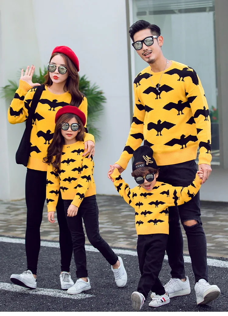 Плотный свитер для родителей и детей осенне-зимний новый жаккардовый черный Свободный корейский теплый кардиган для мамы и дочки, семейная одежда Повседневный Вязаный топ для папы и сына