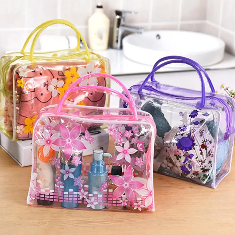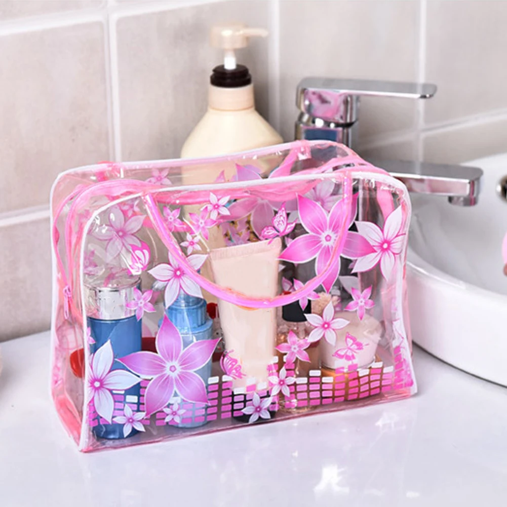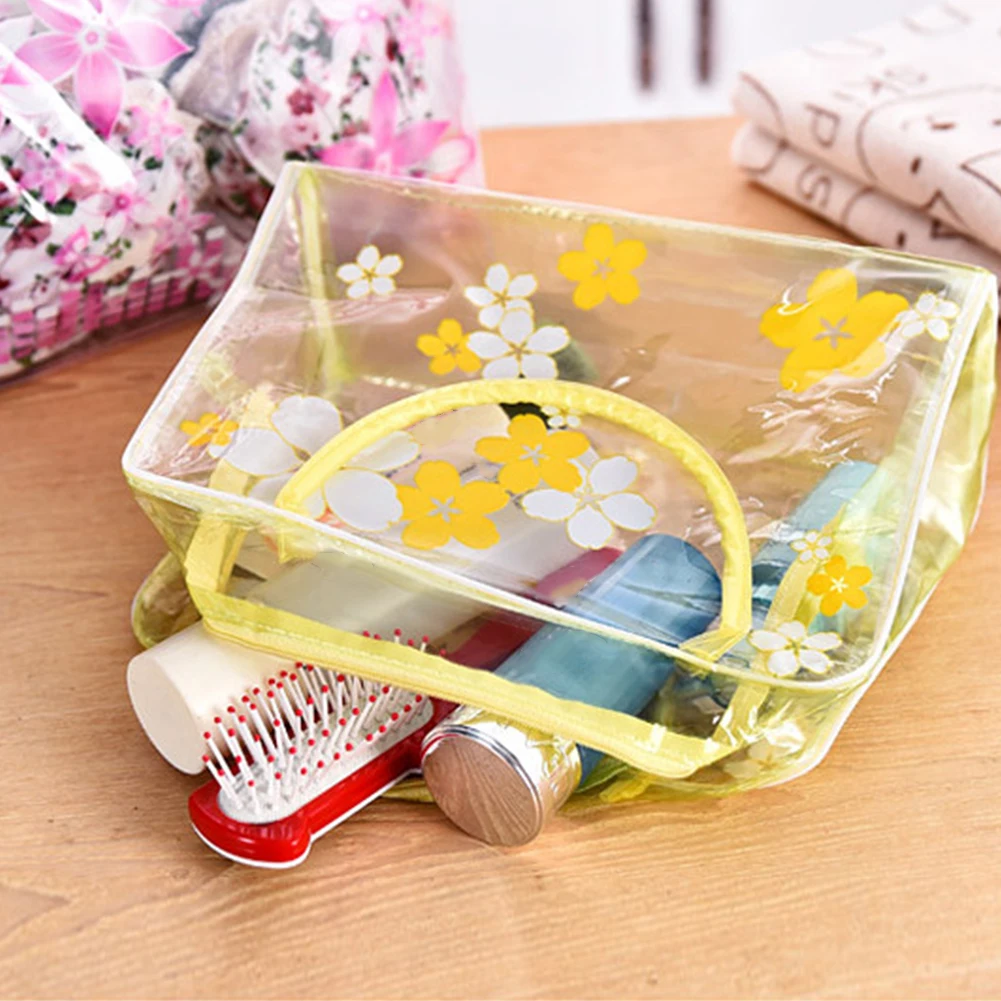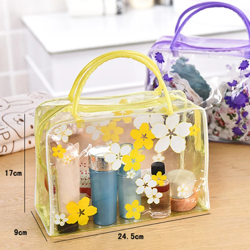 Travel Transparent Cosmetic Bag Waterproof PVC Storage Bags Flower Makeup Organizer Zipper Clear Makeup Bags Toiletry Wash Bag
