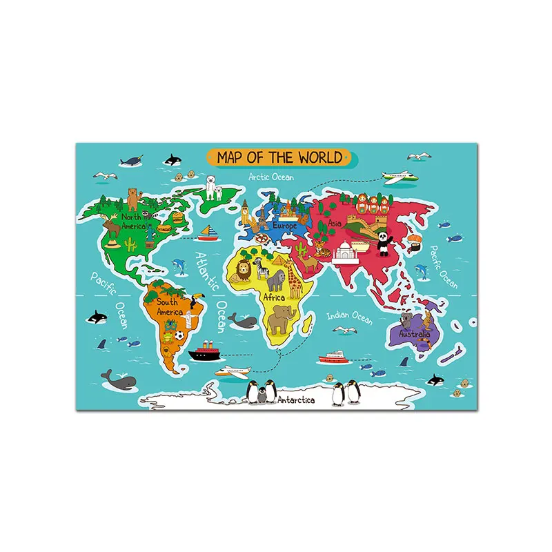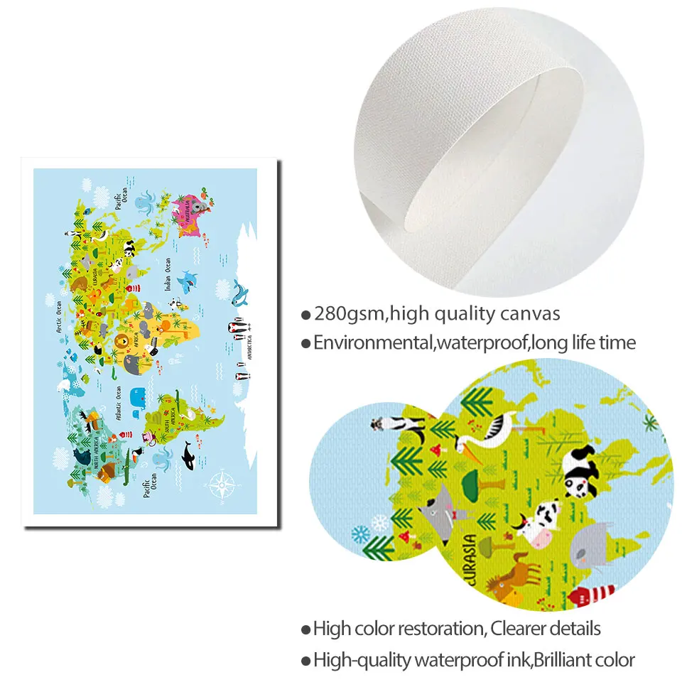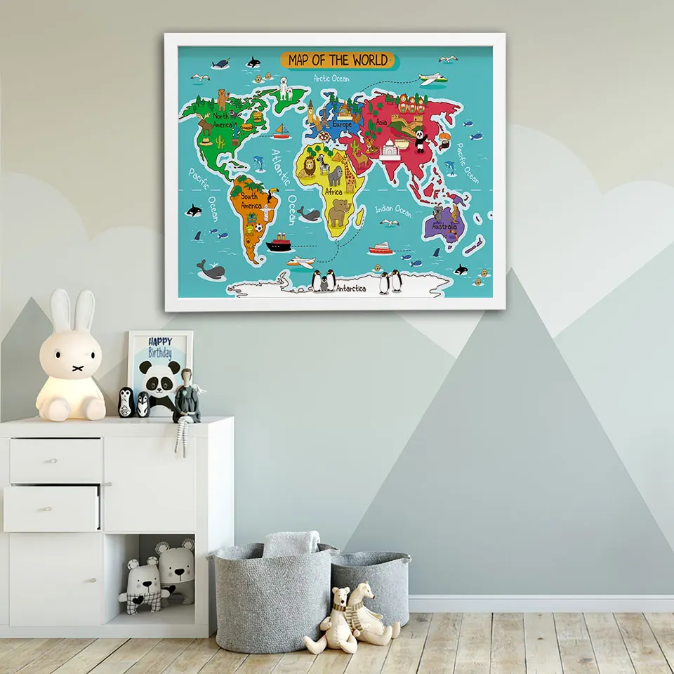 Постер с изображением животных на карте мира, постеры с рисунками из мультфильмов, скандинавский декор для детской комнаты, детская Картина на холсте, скандинавские настенные картины для гостиной, современная картина, Unframe
