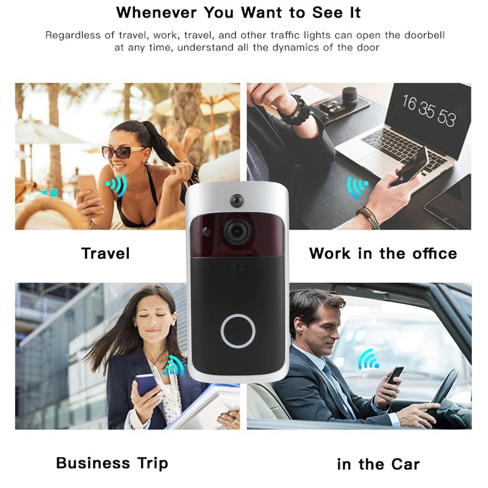 Беспроводное подключение, сверхнизкое энергопотребление, удаленное активное пробуждение, быстрый запуск Пользователи могут совершать видеозвонки и короткие видеозаписи. Хост не должен открывать дверь, чтобы узнать информацию Поддержка инфракрасного света, HD рендеринга ночного видения Разрешение HD 720 P, четкие и деликатные изображения Передовая технология сжатия видео, ультра низкая скорость бит, высокое качество изображения Поддерживает все типы мобильный удаленный контролирующий (для IOS, для Android) Очень низкое энергопотребление, только 2 18650 литиевая батарея питания (не установлен), длительный срок службы батареи Дверной звонок информация мгновенное приложение точный толчок Место применения: Дворовые ворота, квартира, семья, магазин Упаковочный лист: 1X видео-дверной звонок, 1X задняя панель из искусственной кожи, 1X руководство по эксплуатации на английском языке, 1X крепежный клей, Несколькими винтами