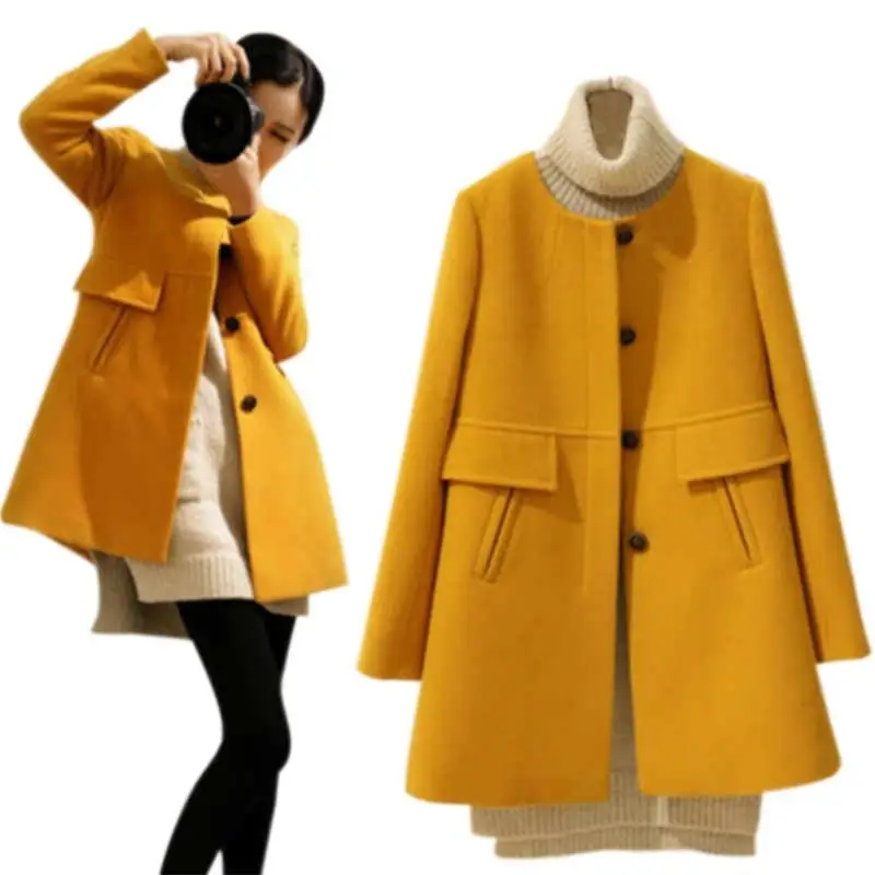 Женское пальто простого размера плюс, однотонное, с круглым вырезом, а-образное, с длинным рукавом, повседневное, женское, тонкий, с карманами, кардиган, верхняя одежда
