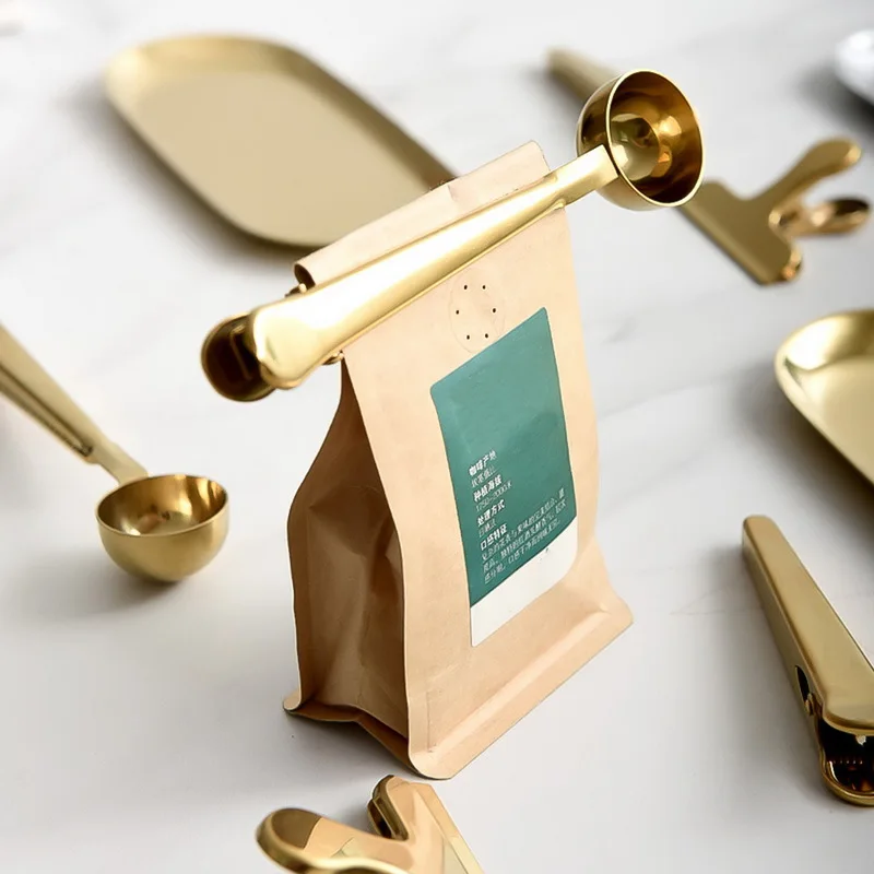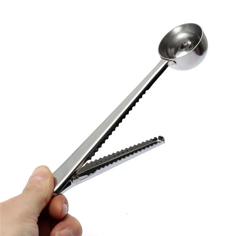 Особенности-столовая ложка имеет пружинный, Встроенный зажим для повторного запечатывания кофе или чайных пакетиков для свежести.