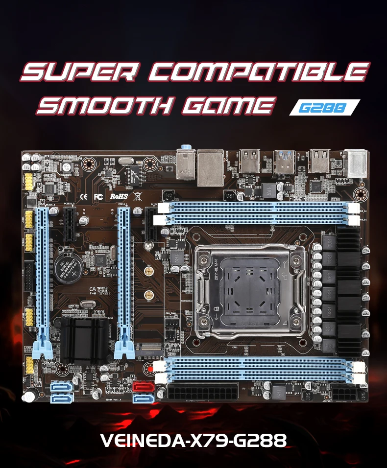 VEINEDA X79 G288 материнская плата LGA2011 ATX основная плата USB3.0 SATA3.0 PCI-E 16X поддержка DDR3 RAM 1600MHZ PC3 SSD и E5 CPU