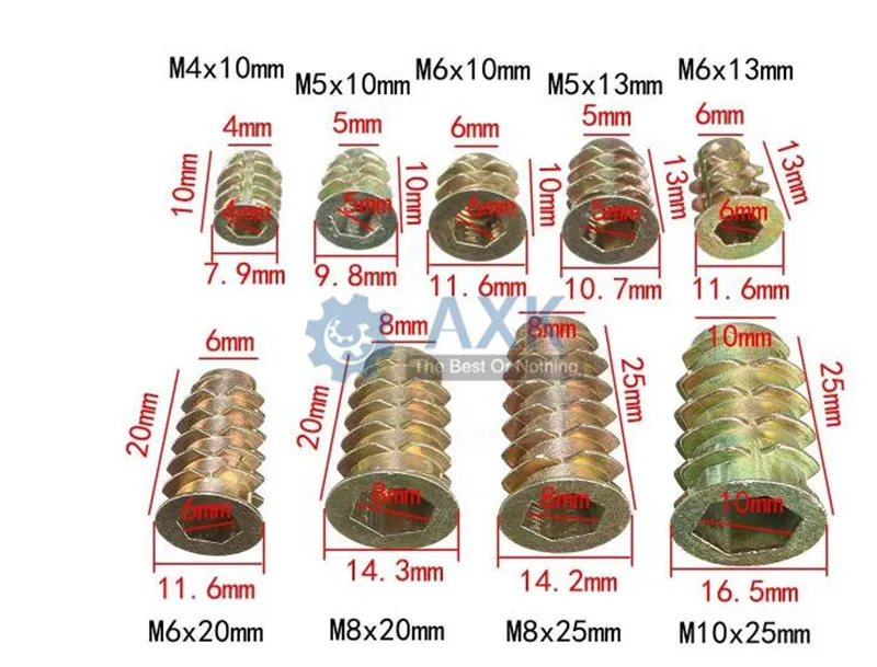 Размер: M10x25, M8x25mm, M8x20mm, M6x20mm, M6x13mm, M6x10mm, M5x13mm, M5x10mm, M4x10mm
