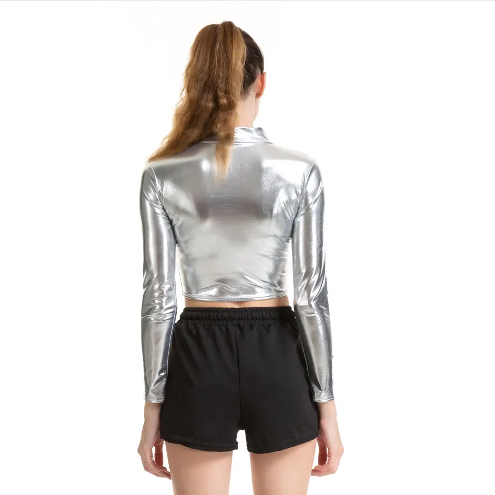 Материал: полиэстер, спандекс, хлопок, искусственная лакированная кожа Цвет: зеленый/красный/золотистый/серебристый/лазерный Размер: S/M/L/XL/XXL Пол: для женщин Поверхность: блестящий металлик Стереотип: тонкий/облегающий Туалетного столика с покрытием из искусственной кожи Тип: Европа и Америка Длинный рукав/пуловер: Да Эластичность: Да Воротник: воротник-стойка Модные элементы: Пэчворк/градиент Случаи: вечеринка, ночной клуб, бар, танцы, сценическое представление, музыкальный фестиваль, косплей, уличная одежда и т. Д.