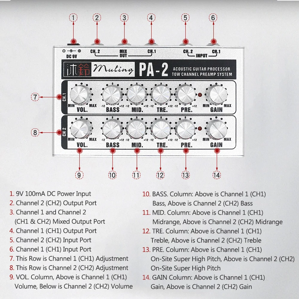 PA-2 может быть вставлен в два инструмента одновременно и может быть независимо отрегулирован. Вы можете выбрать независимый выход или смешанный выход для динамика.