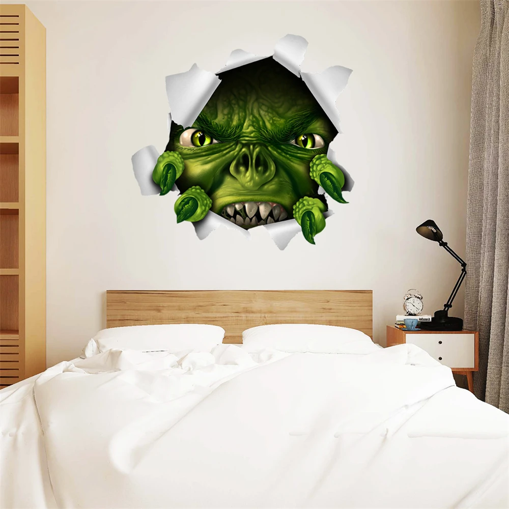 3D монстр Хэллоуин жуткая кровавая стена сломанная стена стикер ужас украшение призрак наклейка домашний декор Фреска праздничные вечерние принадлежности
