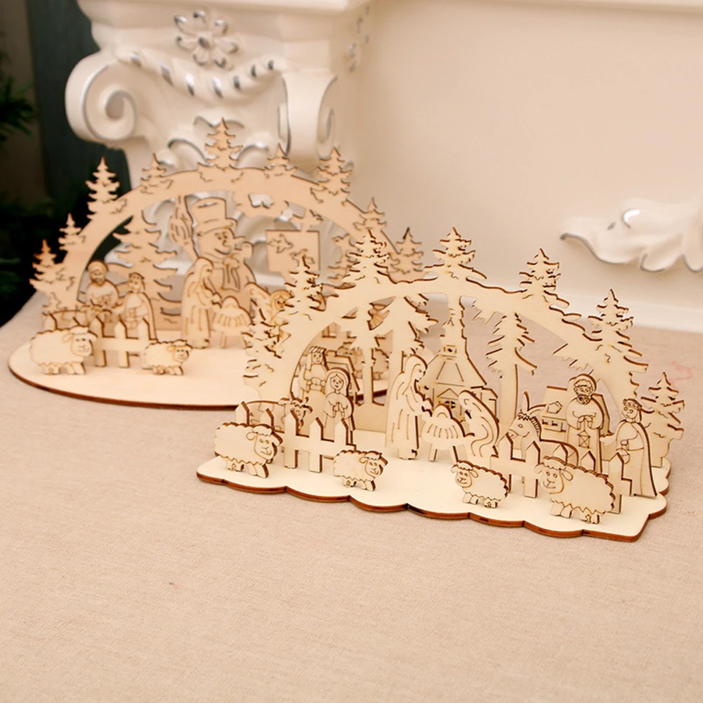 DIY рождественская деревянная игрушка рождественские забавные вечерние украшения для рабочего стола рождественские деревянные украшения трехмерные детские игрушки украшения