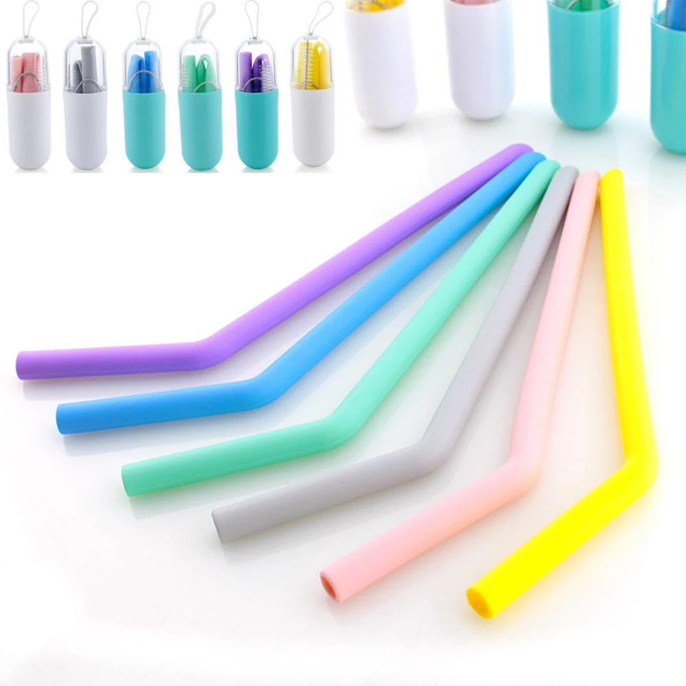 Портативная Складная Силиконовая многоразовая Питьевая солома с щетка для чистки чашек аксессуары