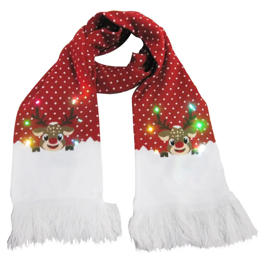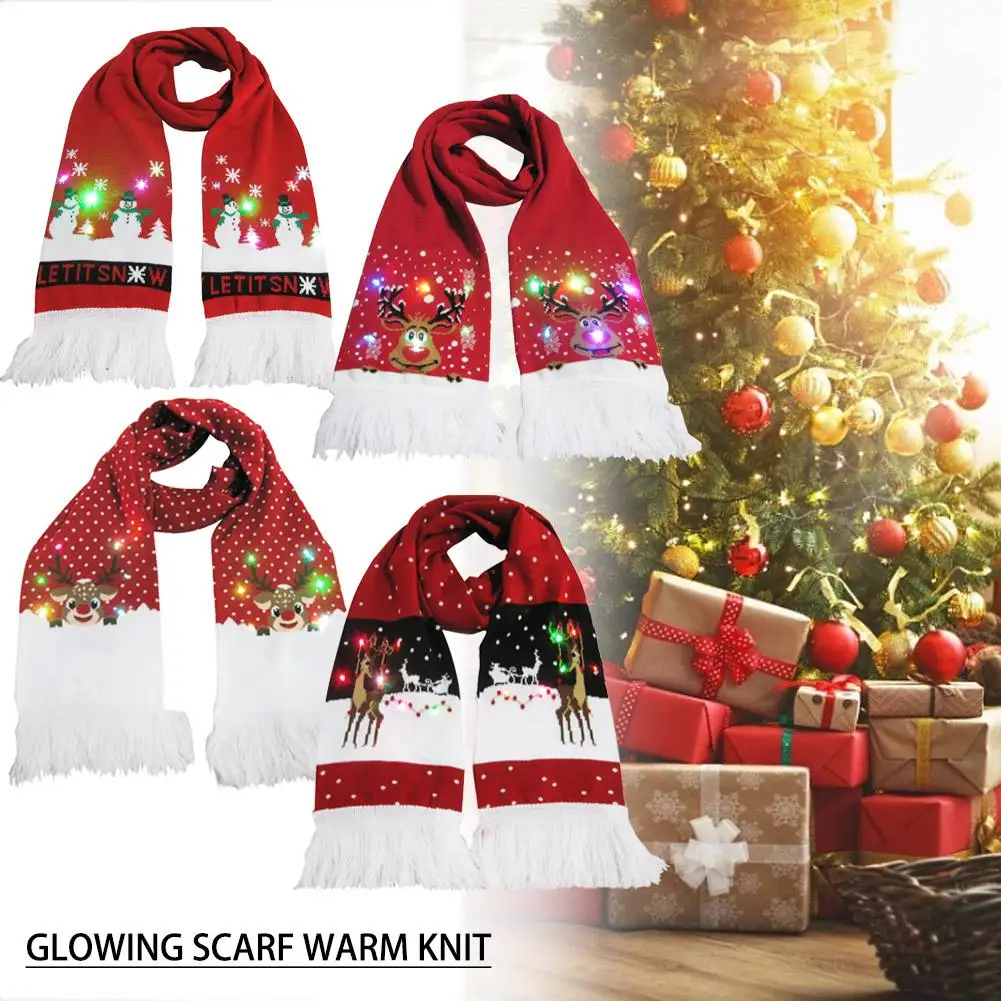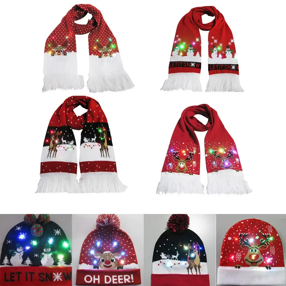 Рождественский светящийся шарф, шапка для мужчин и женщин, осенний и зимний теплый вязаный шарф, шапка, украшение для танцевальной вечеринки, подарок на день рождения, праздник
