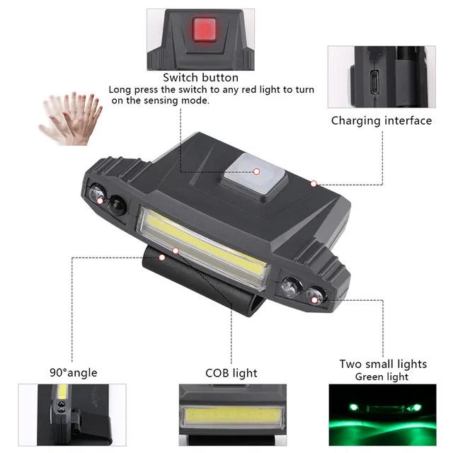 COB налобный фонарь, 4 режима, USB Перезаряжаемый колпачок, светильник с зажимом, индукционный COB налобный фонарь, головной убор, светильник со встроенным аккумулятором, светильник ing Z50