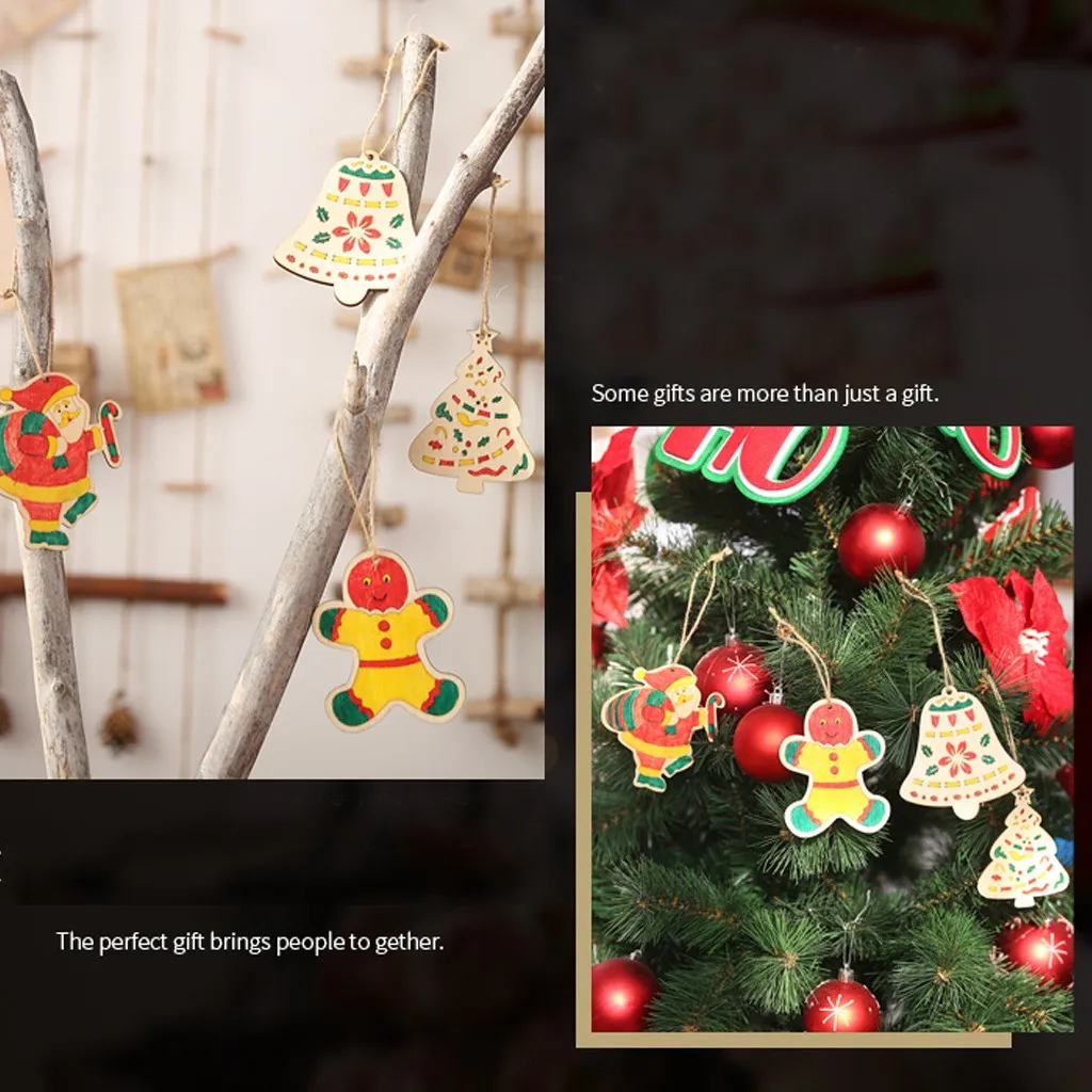 Merry Christmas "сделай сам" из дерева Украшение в виде колокольчиков Санта-Клауса