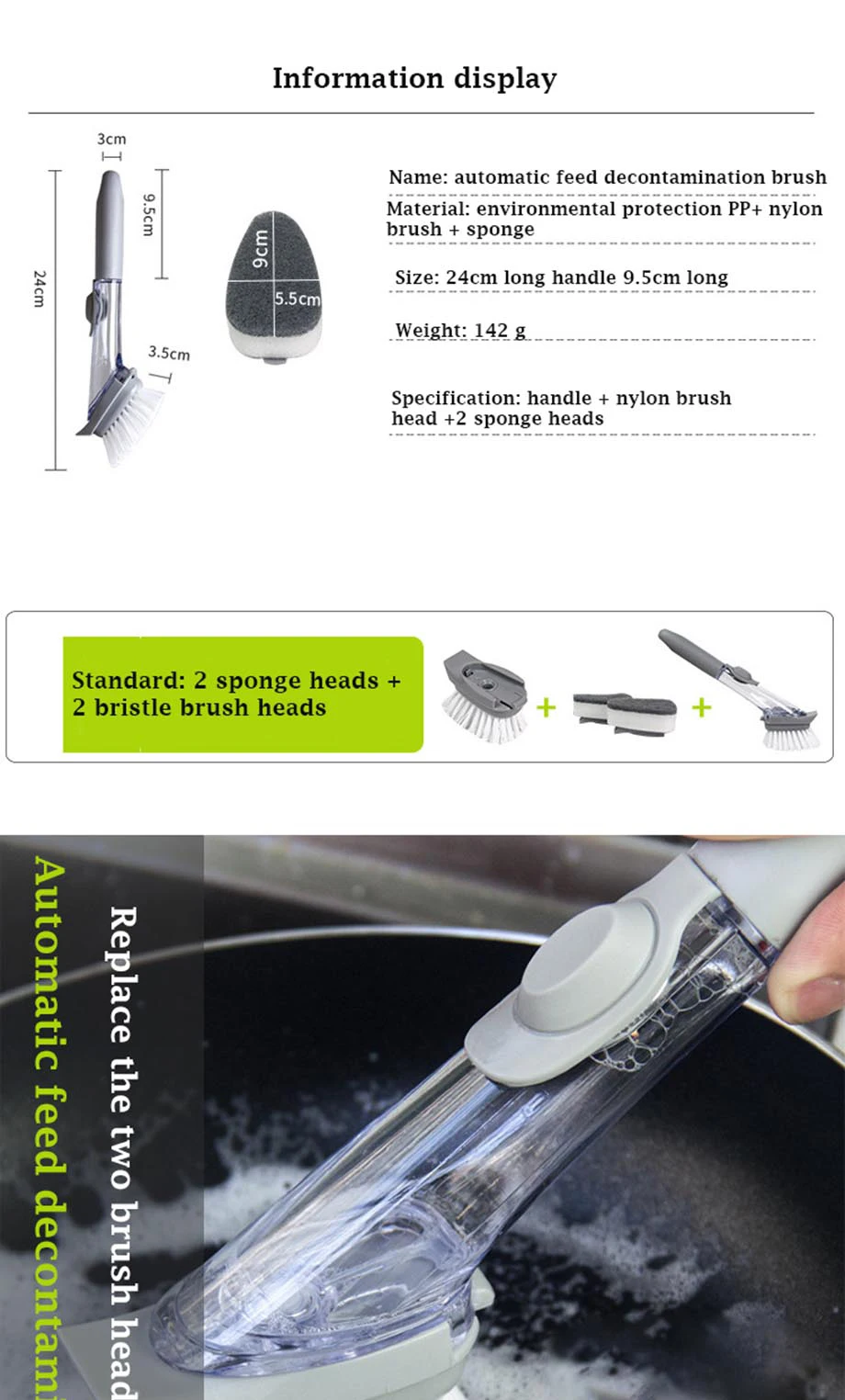 Особенности: Легко чистить: после использования используйте чистую воду, поместите ее в вентилируемое место для сушки. Экономичная и долговечная: одна кисть сочетает в себе функции щетки для мытья посуды и губки для мытья посуды. Хорошее качество и долговечность, Сэкономьте деньги и Освободите руку Простота в использовании: Установите головку кисти, а затем Откройте кнопку, чтобы влить жидкость в тело скраба, нажмите кнопку, чтобы начать очистку вашей кухни, включая блюда, миски, горшки, стекло, все, что вы хотите очистить. Антибактериальные и гигиенические: Наши скрубберы изготовлены из пищевых материалов, потому что они естественным образом антибактериальные и они не такие пористые, как обычные губки и салфетки. С этими силиконовыми посудомоечными машинами больше Нет Вонючих бактерий, нагруженных губкой! Подробная информация: Название продукта: Нескользящая автоматическая щетка для моющего средства Цвет изделия: серый светильник Вес продукта: 0,15 кг Размер изделия: длина ручки: 24*3 см насадка для зубных щеток: 7,5*4,5 см губка 9*5 см Материал изделия: ПП + губка + нейлоновая кисть Совет: размер изделия измеряется вручную, с некоторыми ошибками. Если у вас есть какие-либо вопросы, пожалуйста, свяжитесь с онлайн-службой поддержки клиентов.
