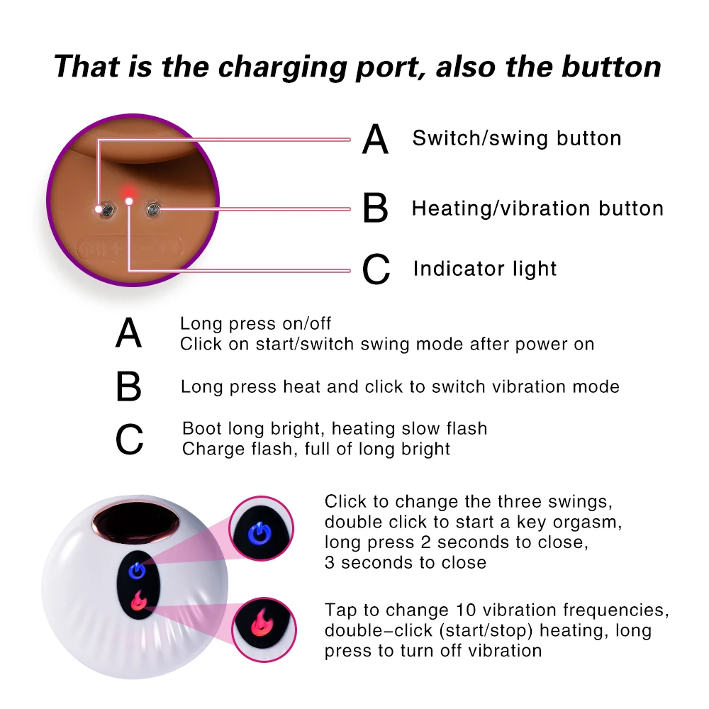 Функция: 10 Частотная вибрация + 3 вида качелей, интеллектуальное отопление, 20 м беспроводной пульт дистанционного управления, мощная присоска