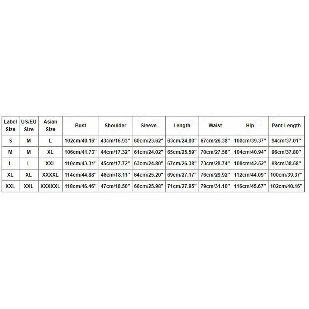 Этикетка Размеры US/EU Размеры Азиатский Размеры Обхват груди Сумка на плечо Рукава Длина Обхват талии Обхват бедер Брюки Длина S М L 102 см/40,16'' 43 см для ухода за ребенком для мам/16,93'' 60 см/23,62'' 63 см/24,80'' 67 см/26,38'' 100 см/39,37'' 94 см/37,01'' М М XL 106 см/41,73'' 44 см/17,32'' 61 см/24,02'' 65 см/25,59'' 70 см/27,56'' 104 см/40,94'' 96 см/37,80'' L L XXL 110 см/43,31'' 45 см/17,72'' 63 см/24,80'' 67 см/26,38'' 73 см/28,74'' 108 см/42,52'' 98 см/38,58'' XL XL XXXXL 114 см/44,88'' 46 см/18,11'' Высота голенища 64 см; 25,20'' 69 см/27,17'' 76 см/29,92'' 112 см/44,09'' 100 см/39,37'' XXL XXL XXXXXL 118 см/46,46'' 47 см/18,50'' 66 см/25,98'' 71 см/27,95'' 79 см/31,10'' 116 см/45,67'' 102 см/40,16''