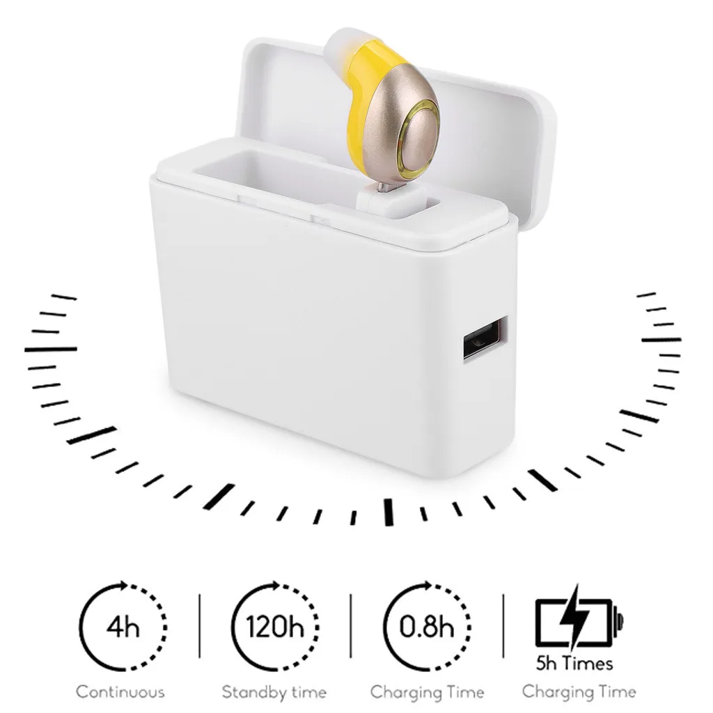 Наушники с одним ухом и зарядным устройствомВерсия Bluetooth: V5.0 + EDRРасстояние использования: 10 метровБатарея Емкость:Наушники: 50 мА · ч;Зарядное устройство: 2500 мАчВремя работы на одном заряде: наушники: 0,8 часВремя работы в режиме ожидания: 120 минут;Время разговора: около четырех часовОбратите внимание