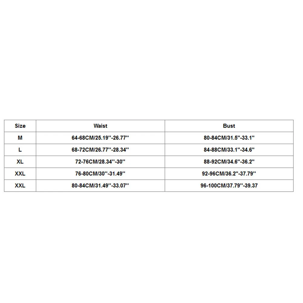 Размер Бюст Талия S 80-84 см/31,49 ''-33,07'' 64-68 см/25,19 ''-26,77'' М 84-88 см/33,07 ''-34,64'' 68-72 см/26,77 ''-28,34'' L 88-92 см/34,64 ''-36,2'' 72-76 см/28,34 ''-30'' XL 92-96 см/36,2 ''-37,79'' 76-80 см/30 ''-31,49'' XXL 96-100 см/37,79 ''-39,37'' 80-84 см/31,49 ''-33,07''