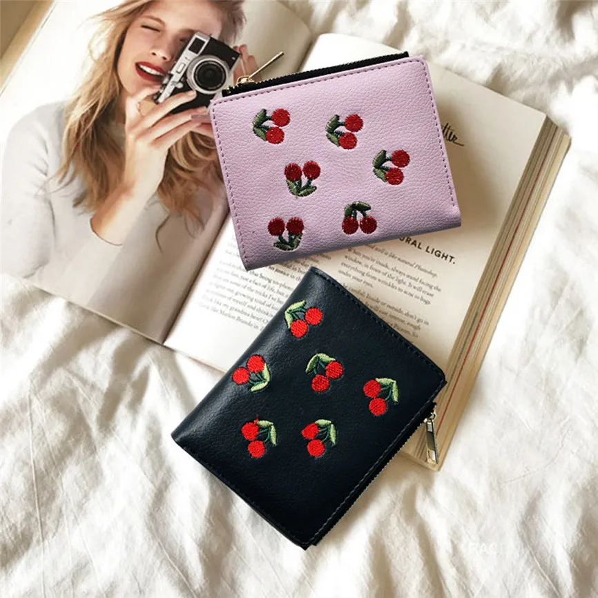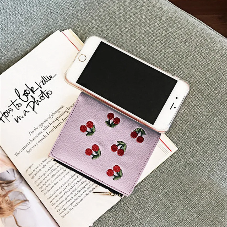 Роскошный женский кошелек, короткая вышитая пряжка в виде вишни, держатель для карт, кошелек, посылка для карт, наборы для карт