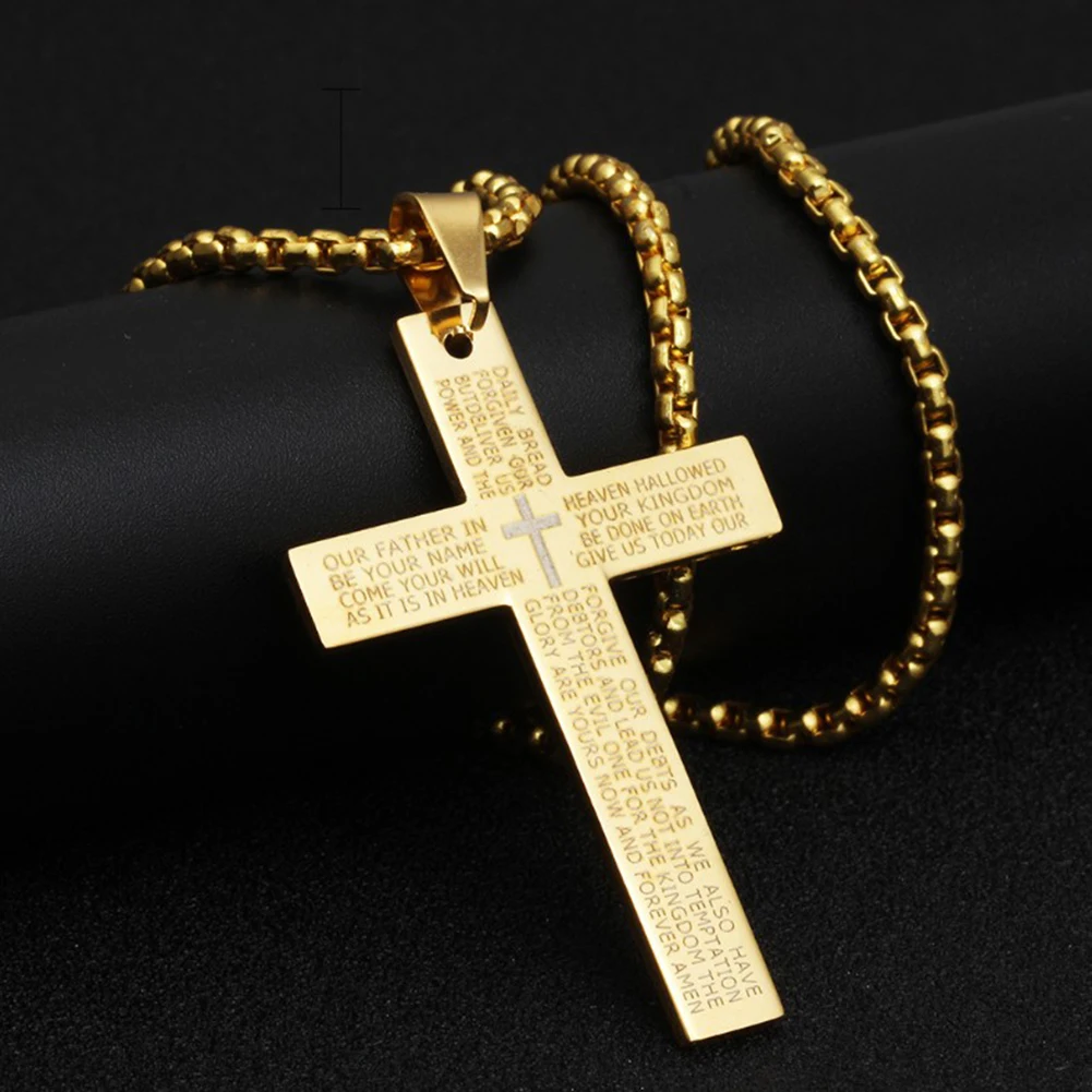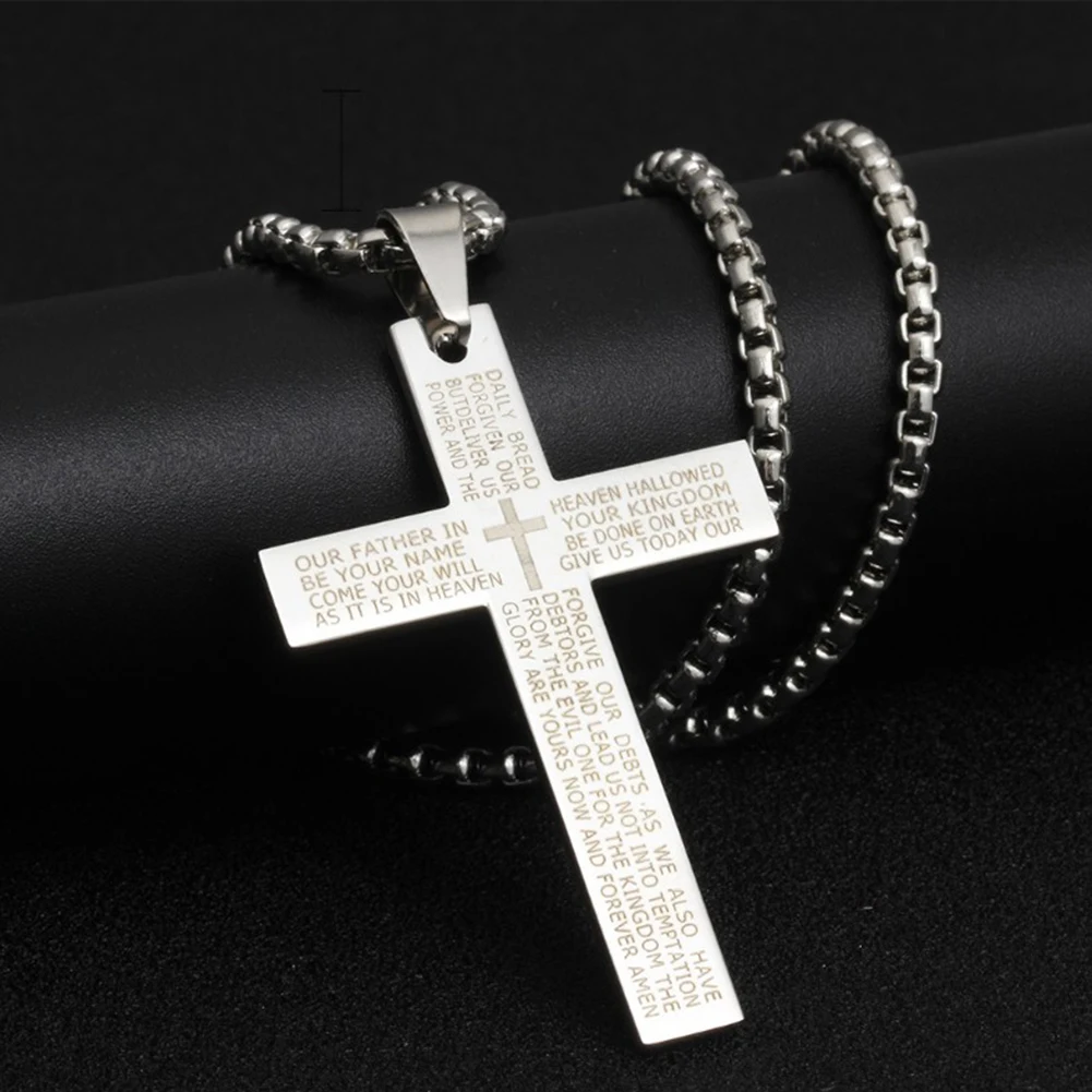 Fashion Men Letters Print Cross Pendant Titanium Steel Chain Necklace Jewelry Gift