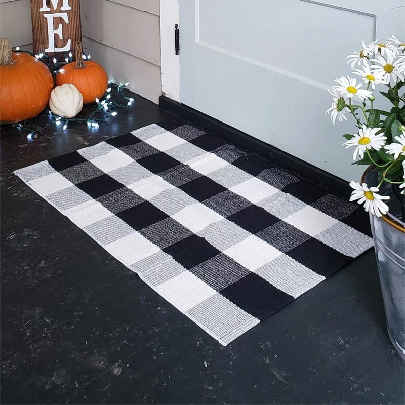 1. Хлопковый клетчатый ковер Buffalo изготовлен из высококачественного 100% хлопкового материала., экологичный и прочный.