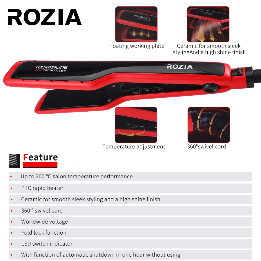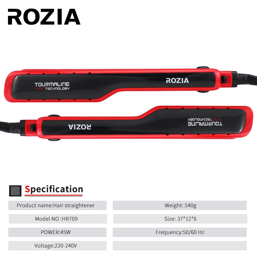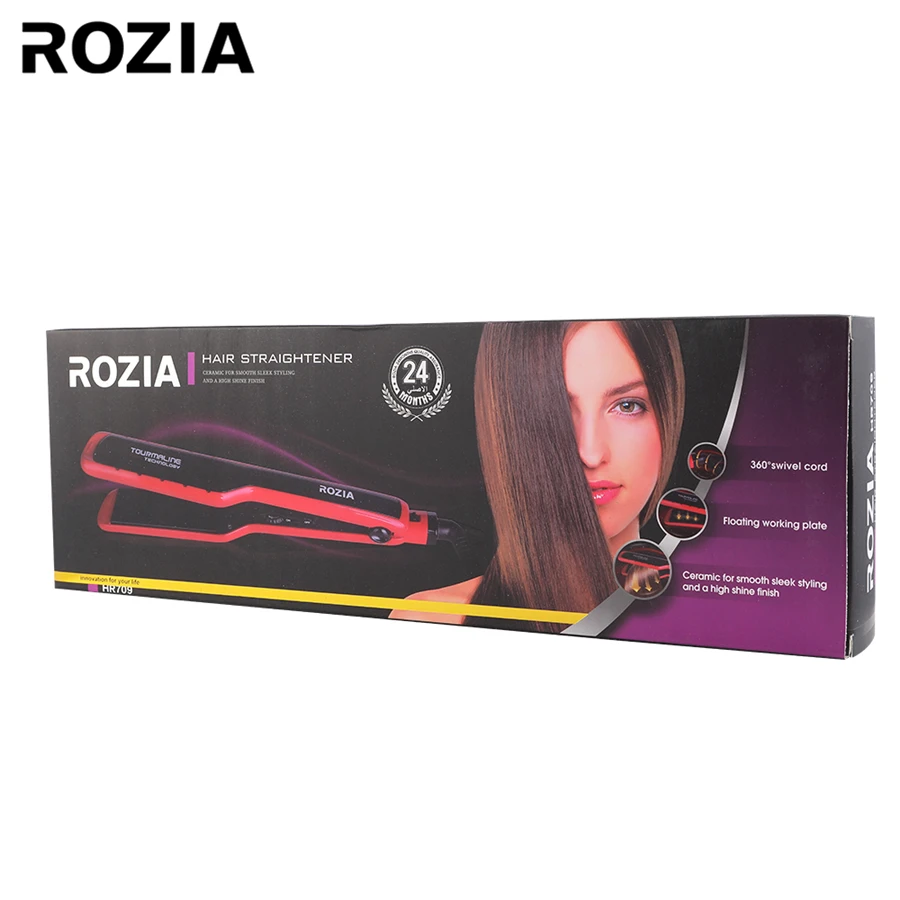 Описание: Вес: 540 г Размер: 37*12*6 Name Название продукта: выпрямитель для волос Model NO: HR709 POWER: 45 Вт Напряжение: 220-240 В (обратите внимание на напряжение) Frequency: 50/60 Гц Instruments Кукурузы стайлер для волос Керамика для гладкого дизайна и блестящая отделка Температура салона до 200 ℃ PTC быстрый нагреватель Ceramic керамика для гладкого дизайна и высокого блеска 360 ° поворотный шнур Worldwide напряжения Fold функция блокировки LED индикатор переключения С функцией автоматического отключения в течение одного часа без использования
