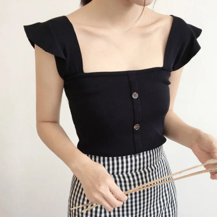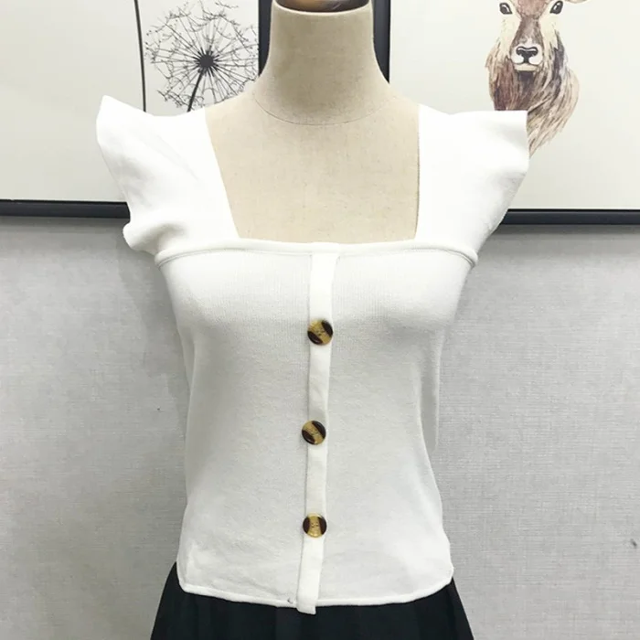 Тип одежды: женская летняя кофта Вязанная одежда без рукавов, приталенный женский жилет с квадратным вырезом