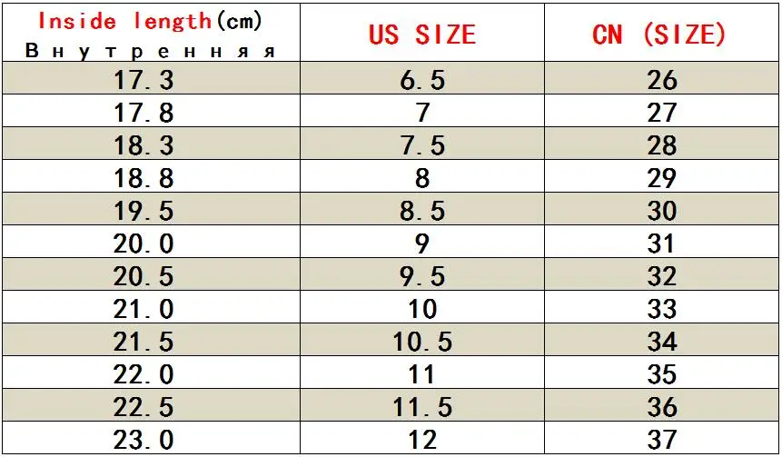 1: американский размер не стандартный, просто удобный для вас, чтобы сделать заказ. Пожалуйста, выберите размер в зависимости от длины внутри. И есть только CN размер на обуви. Пожалуйста, обратитесь к CN размер при получении товара 2: Мы не вернем вам деньги, если вы выбираете неправильный размер, пожалуйста, выберите размер небрежно. 3: способ выбрать идеальную обувь для ваших детей. Длина стопы + 1 см = Внутренняя длина. Пожалуйста, измерьте длину стопы вашего ребенка, как показано ниже. если длина стопы 11,5 см, Вы можете добавить 1 см. то есть, выберите длину внутри 12,5 см. Спасибо за поддержку. 4: из-за различных методов измерения может быть погрешность около 1 см, относится к норме.