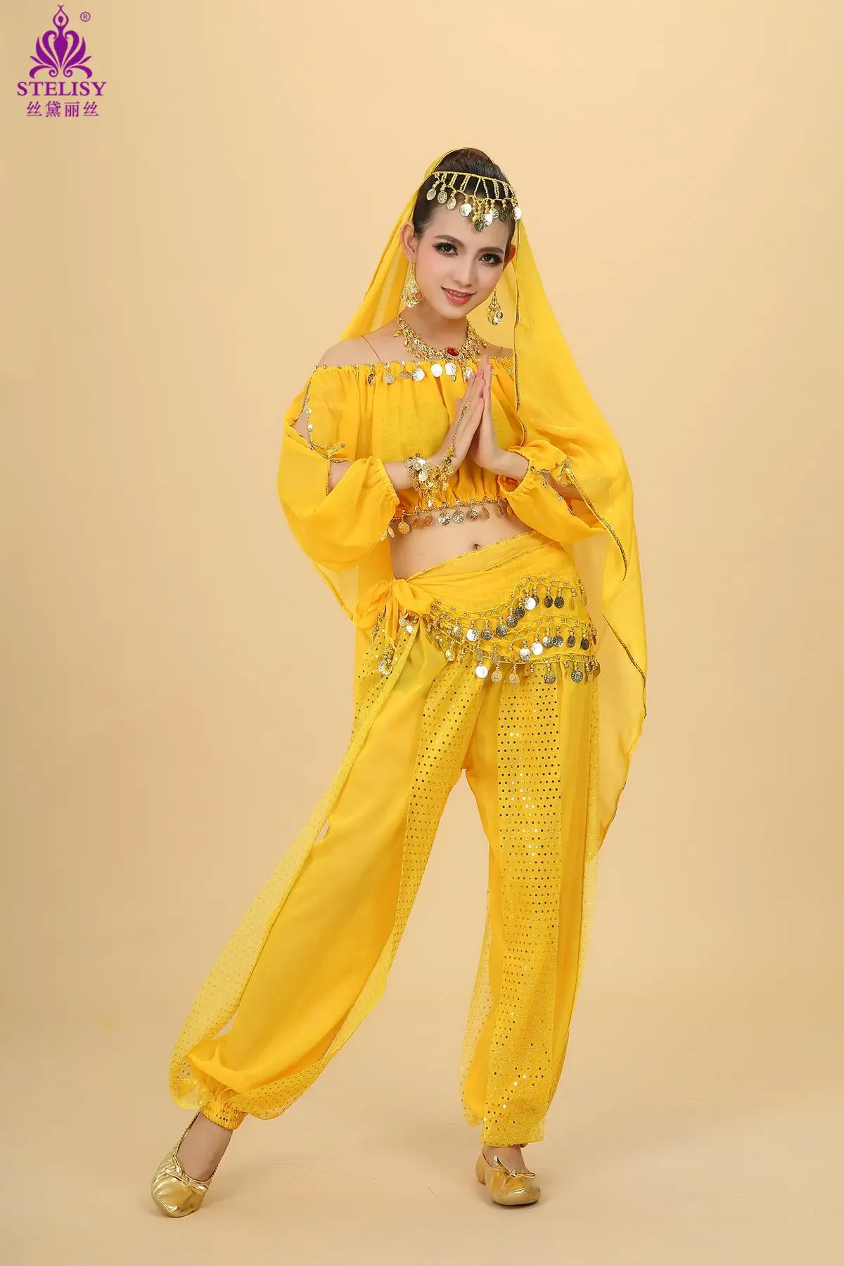 Женский костюм для танца живота, комплекты Болливуда, Восточный живот, танцевальная юбка, Египетский танцевальный костюм для взрослых, 6 цветов