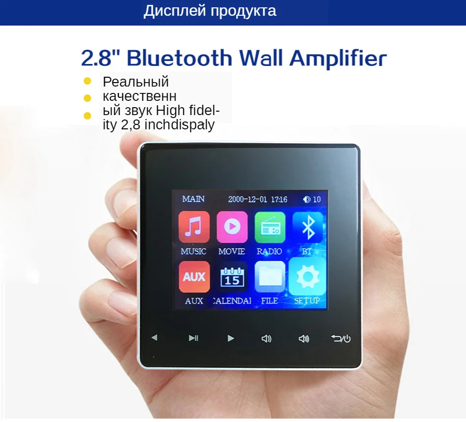 Этот "Настенный мини усилитель с Bluetooth, система фоновой музыки, настенный усилитель со стерео звуком и Bluetooth" оснащен USB/SD и 3,5 мм гнездом, способен питать от 2 до 4 колонок в вашем доме, отеле или маленькой коммерческой территории. Он использует высокоэффективный усилитель класса D для максимальной мощности 2x25 или 4x15 Вт более 8 Ом, колонки с низким сопротивлением. Классный дисплей показывает соответствующую информацию о музыкальном треке. Кроме того, вы можете контролировать все - искать, менять треки и регулировать громкость - с помощью входящего в комплект беспроводного инфракрасного пульта дистанционного управления.