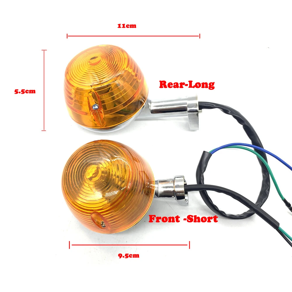 Этот светильник спереди и сзади Короткие один для передней панели Длинное цельнокроеное для задней панели -Материал: металл (цинк) -Светильник Мощность: 12V -Положение: спереди или сзади -Светильник Цвет: Янтарное стекло -Вес: 118 г/шт. -Посылка включает в себя: Передняя 1 пара = 2 шт. короткий Поворотный Светильник Задняя 1 пара = 2 шт. длинный поворотный светильник Передний и задний комплект = 2 шт длинный и два шт короткий Высокое качество производительность Применимость: (Пожалуйста, убедитесь, что эта часть подходит для вашего мотоцикла перед заказом)