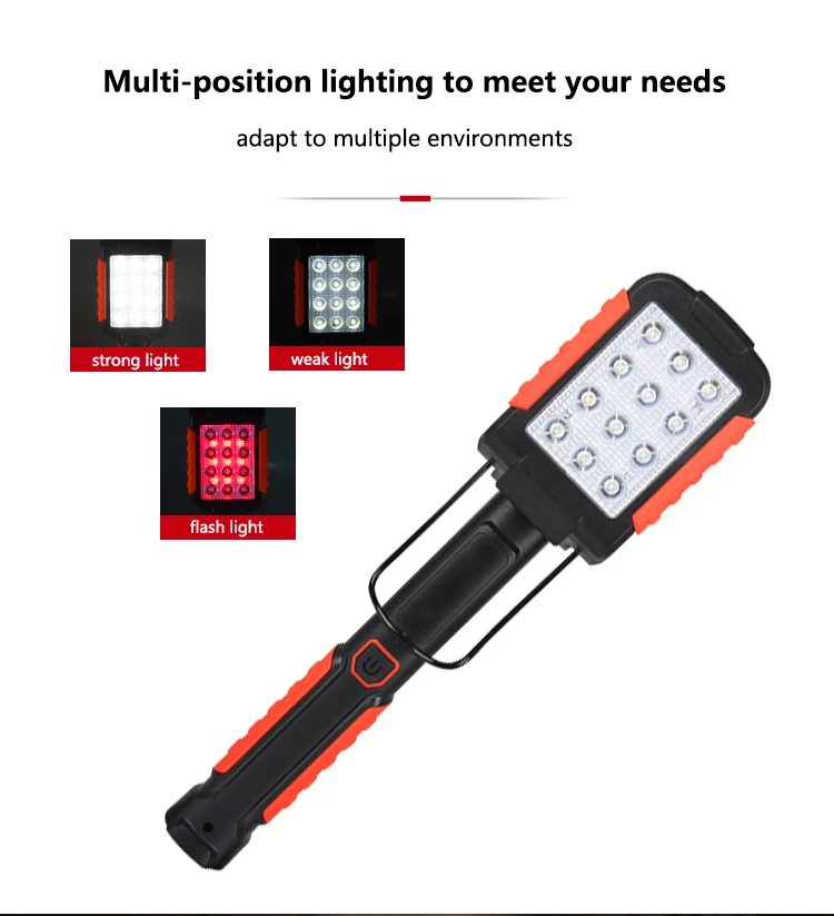 3 режима освещения: сильный свет-слабый свет-красный свет вспышки, 3 различных режима освещения могут удовлетворить ваши потребности освещения в различных средах.