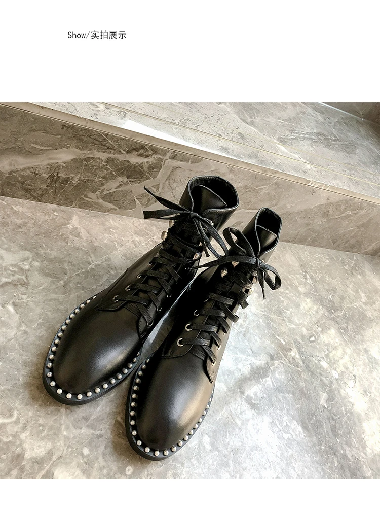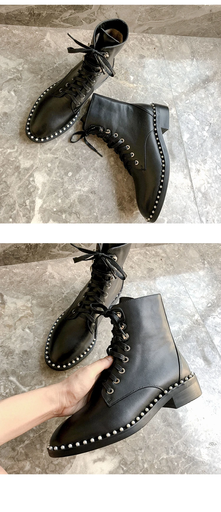 Оригинальные Популярные Новые осенне-зимние ботильоны; Женские черные ботинки Martin в британском стиле; Обувь из натуральной кожи на не сужающемся книзу массивном каблуке. Пожалуйста, используйте нашу таблицу размеров при выборе размера.