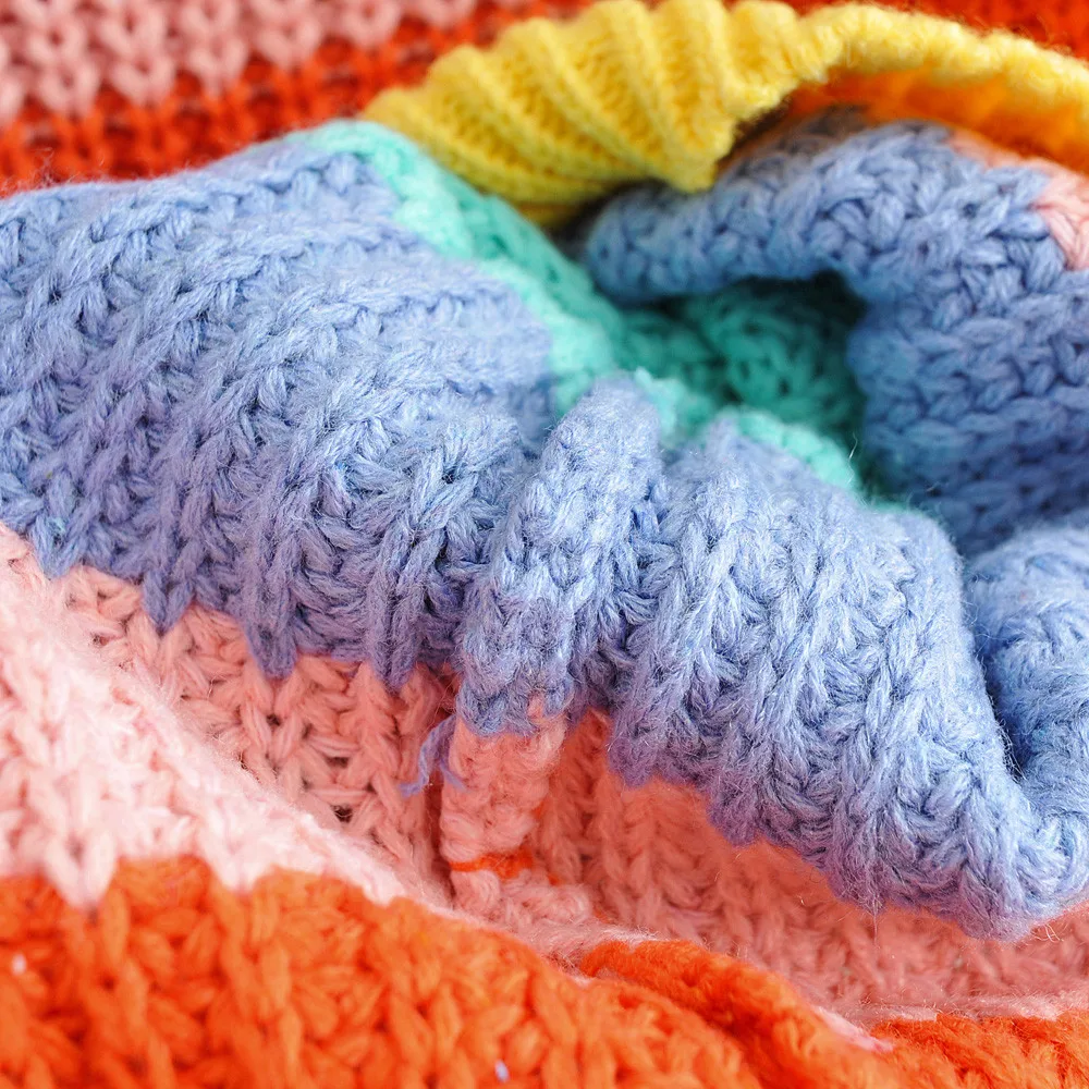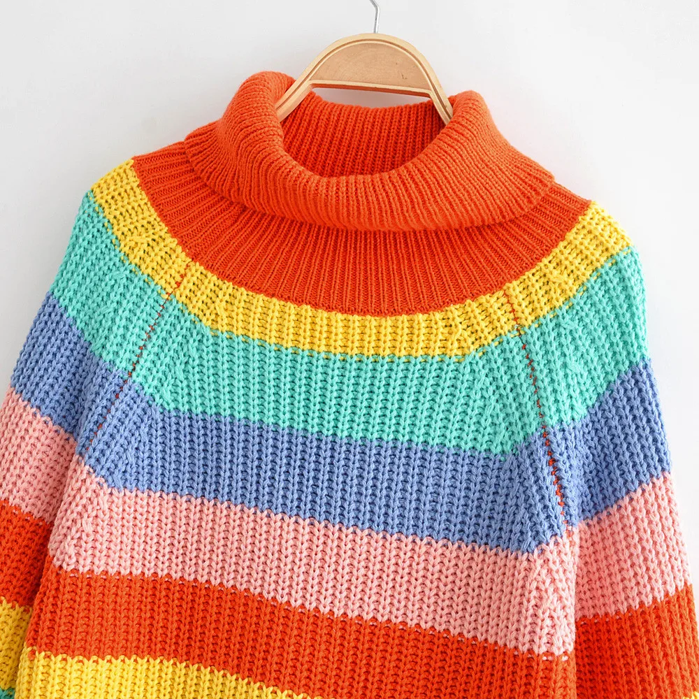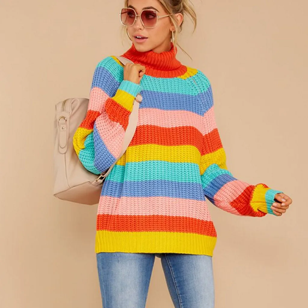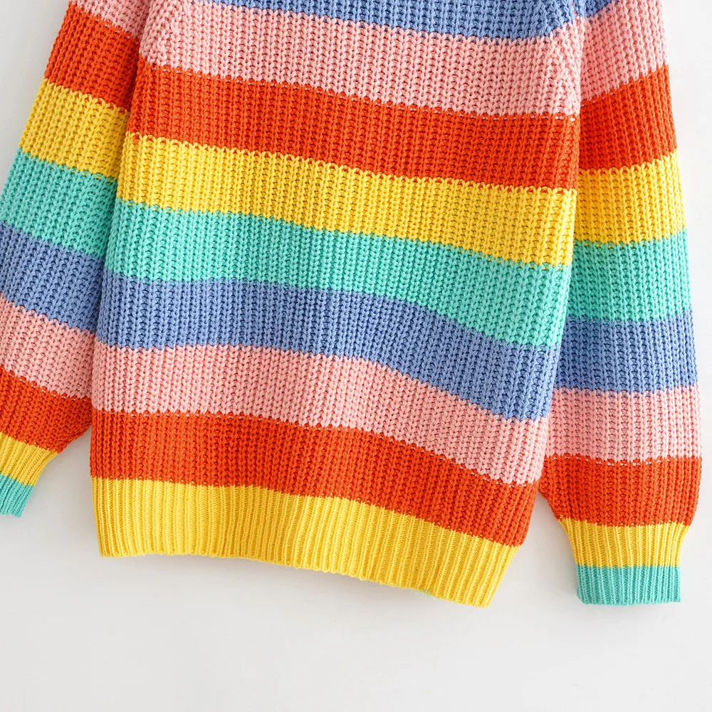 Женский трикотажный кардиган с длинным рукавом и круглым вырезом, топы для женщин, комбинированные радужные рубашки