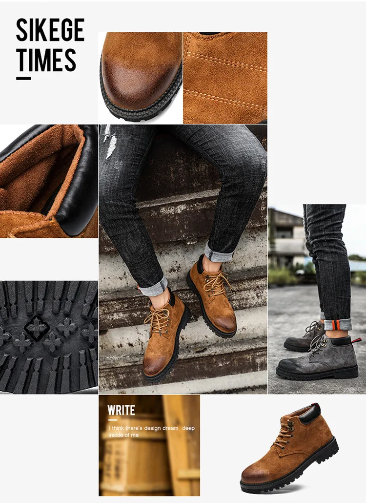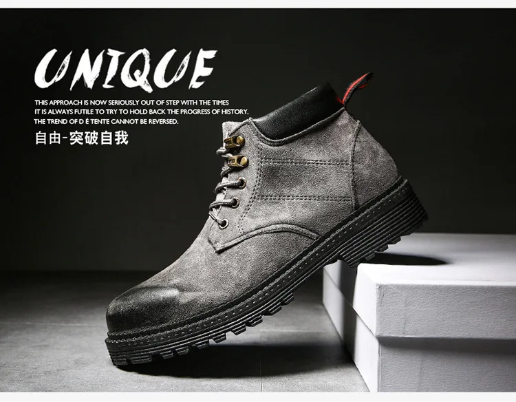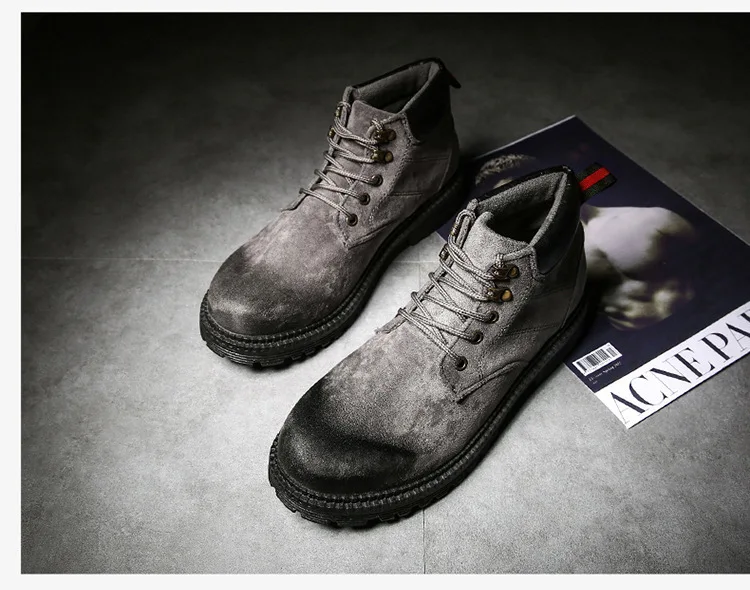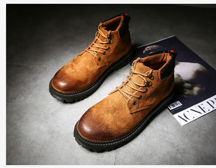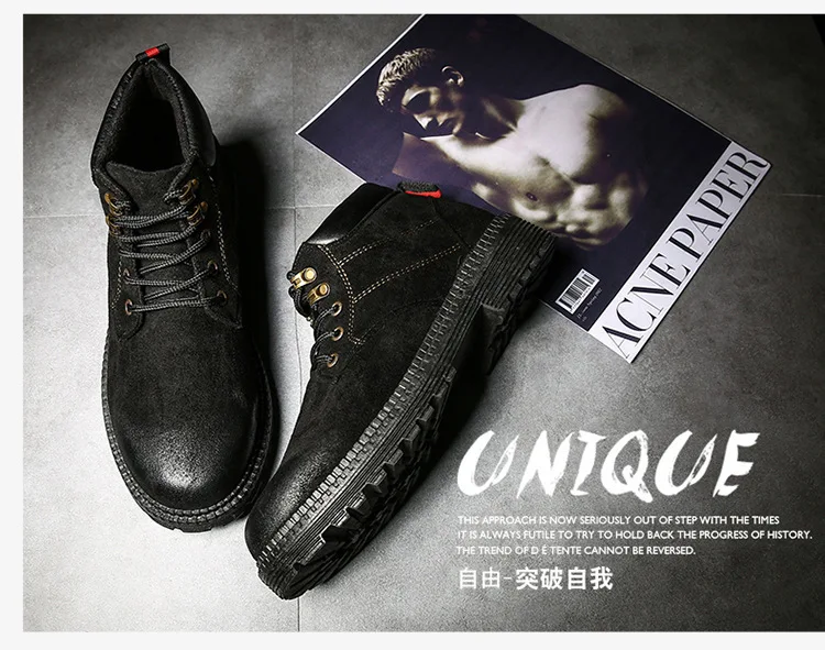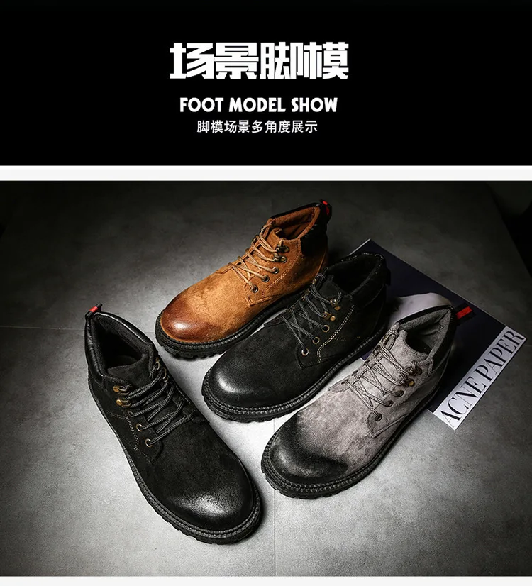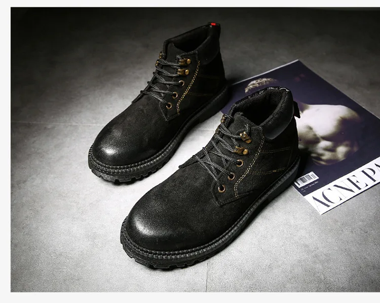 Осенне-зимняя обувь высокие мужские Ботинки martin армейские сапоги в английском стиле зимние мужские ботильоны из флока на резиновой подошве повседневная обувь
