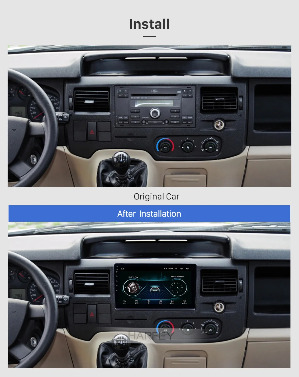 Harfey 10,1 дюймов Android 9,1 Автомобильный GPS радиоДля 2009 2010 2011 2012 2013 2014 2015 2016 2017 2018 2019 Новый Ford TransitПоддержка Carplay SWC автомобильный мультимедийный плеер