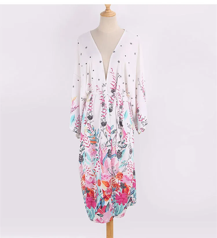 Пляжное платье-кафтан, богемное свободное летнее платье макси, хлопковая туника, женская пляжная одежда, купальный костюм, накидка